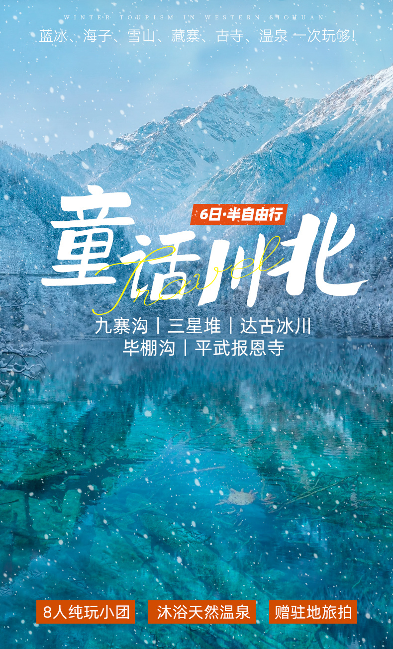 九寨沟+三星堆+毕棚沟+达古冰川+平武报恩寺+古尔沟温泉6日·半自由行