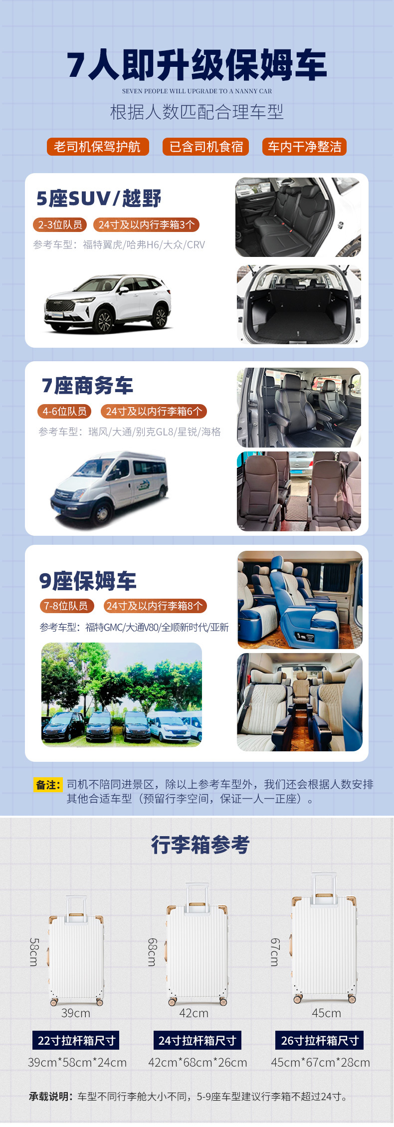 7-8位队员升级9座保姆车;