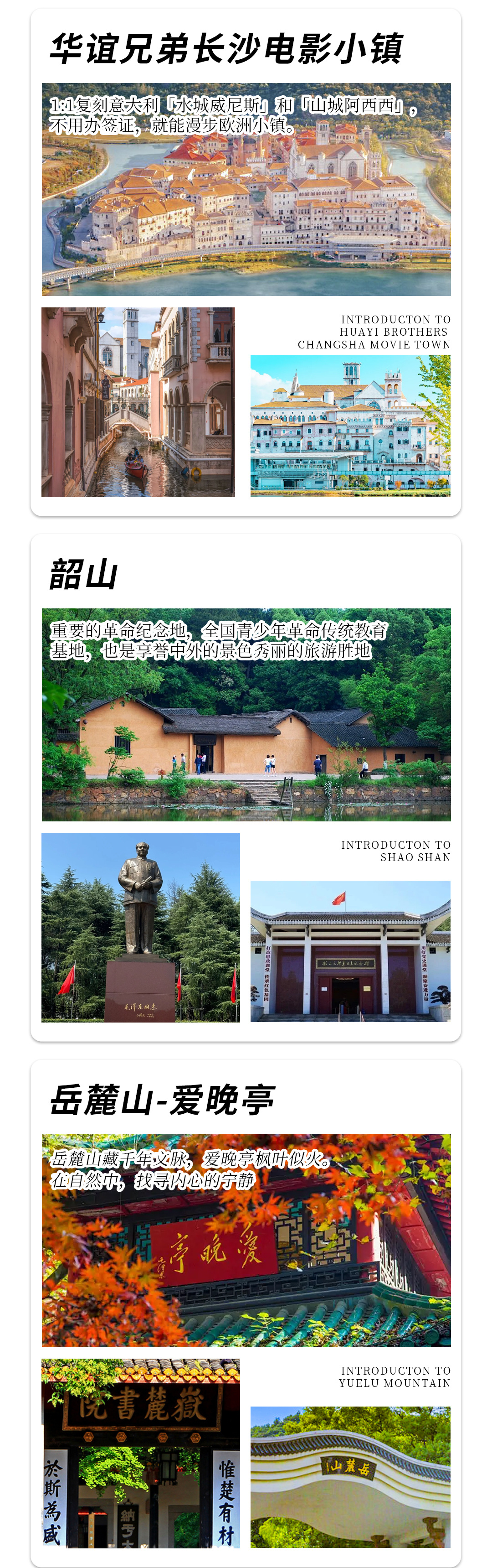 华谊兄弟长沙电影小镇+ 韶山+ 岳麓山 +橘子洲 +潮宗街+黄兴南路步行街