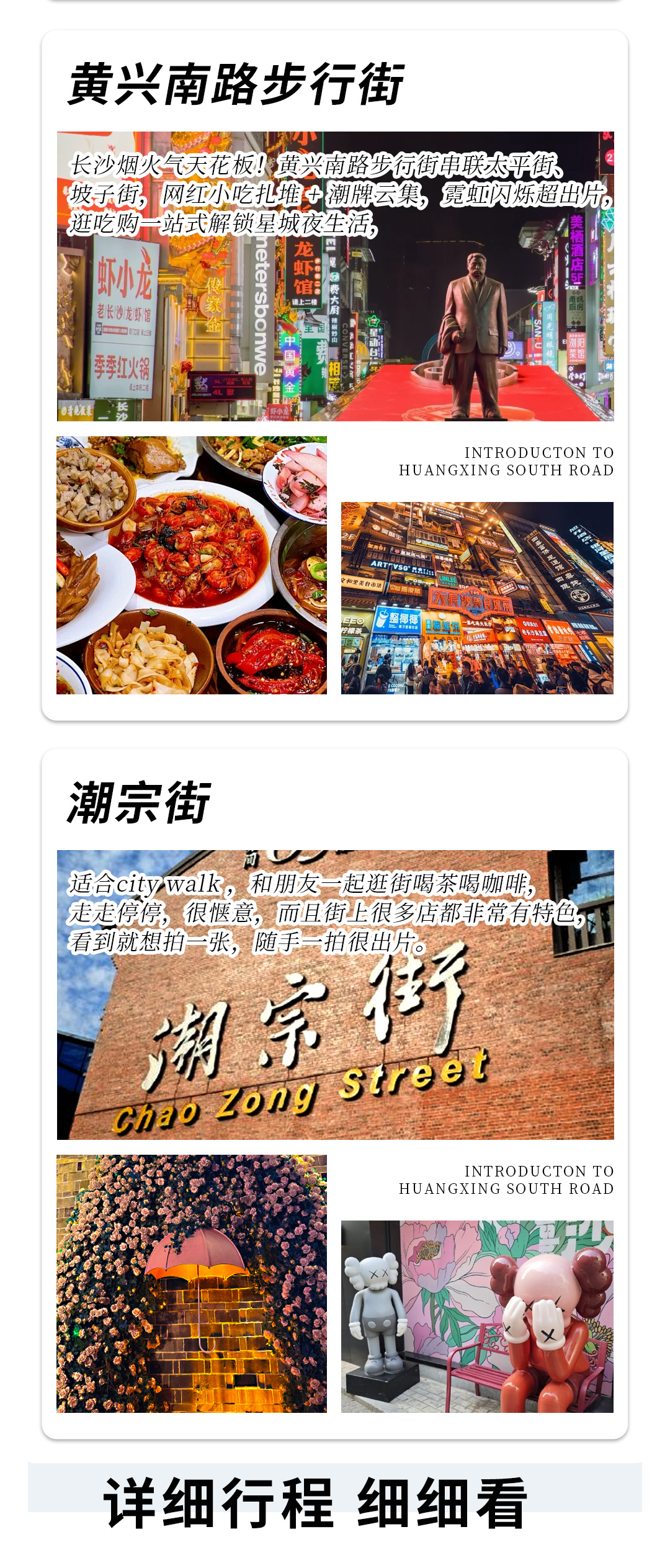 下午:中餐后前往【潮宗街】(游览时间1小时)打卡长沙仅存的4条古麻石街之一,这里有中国首条“电影步道",保留了长沙城根和老城记忆,也保留着老长沙的市井生活,烟火气十足,仿佛置身于八九十年代的长沙,麻石老街、青砖房、古木的保留,赋予了老街新的生命与活力,走在这片街区,就像走进了一座历史记忆的博物馆。