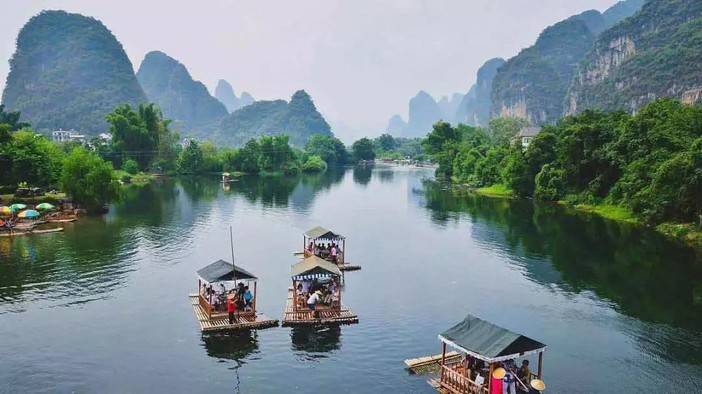 竹筏游览“阳朔山水代表作”【遇龙河多人竹筏】,一派如梦如幻的田园风光!