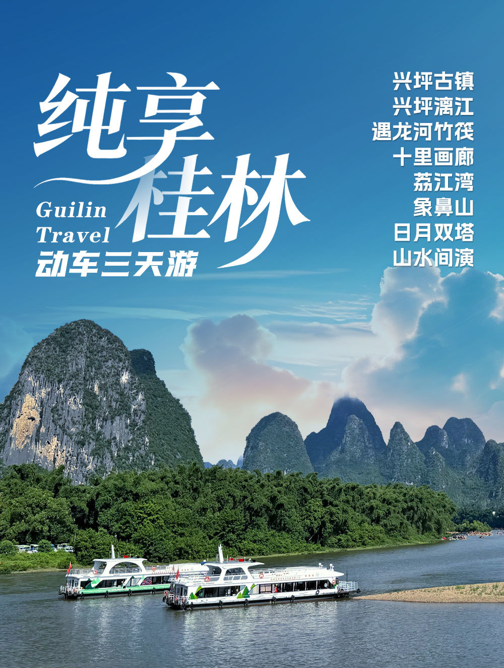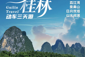 1、【交通】往返动车二等票:广州南/深圳/珠海/佛山/肇庆-桂林北/西-广州南/深圳/珠海/佛山/肇庆(含手续费用),当地空调旅行车(确保每人一正座),自由活动期间不提供用车;广州-桂林参考时间07:00-10:00;桂林-广州参考时间17:00-20:30(具体车次时间以实际出票为准,在出团前提前1天通知)。(注:动车票均为随机订票,座位由电脑随机产生,旅行社无法满足旅游者可能提出的包括座位的连贯性、同团旅游者在同一个车厢内、车票同名、非软卧代二等座等特殊要求,但旅行社会保证所有旅游者能根据行程安排搭乘相关动车。节假日部分票为团体计划票,2天内不能签改退票,敬请注意,所以部分游客报名后两天内取消可能去程票全损,敬请注意!)