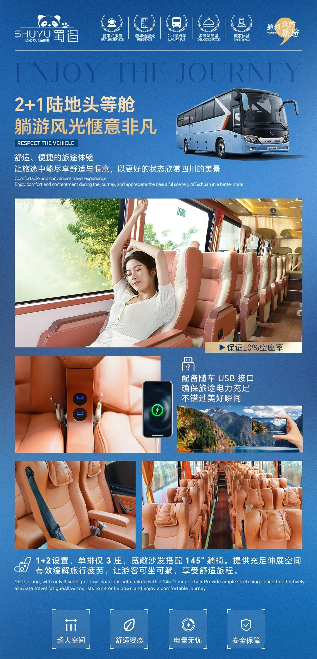 ■行程内用车为旅游巴士,根据同团人数安排车型,空调限时开放(主要争对坡路上行中为保证动力,无法开放);保证一人一座,不提供座次要求;