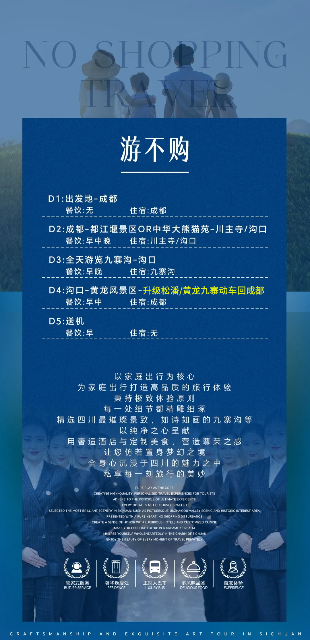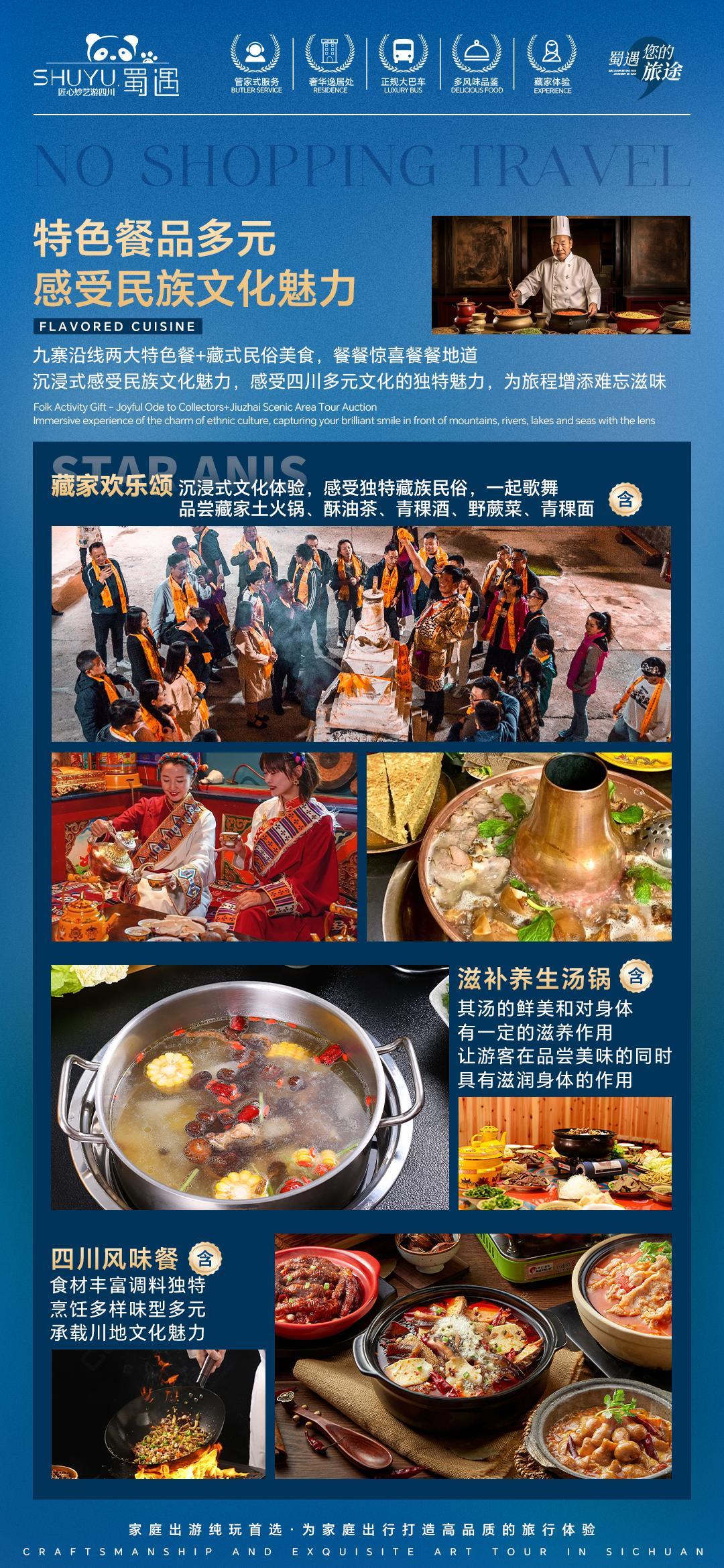 免票共退(九寨退100/黄龙退30/都江堰或熊猫乐园20);未上黄龙退30元/人;