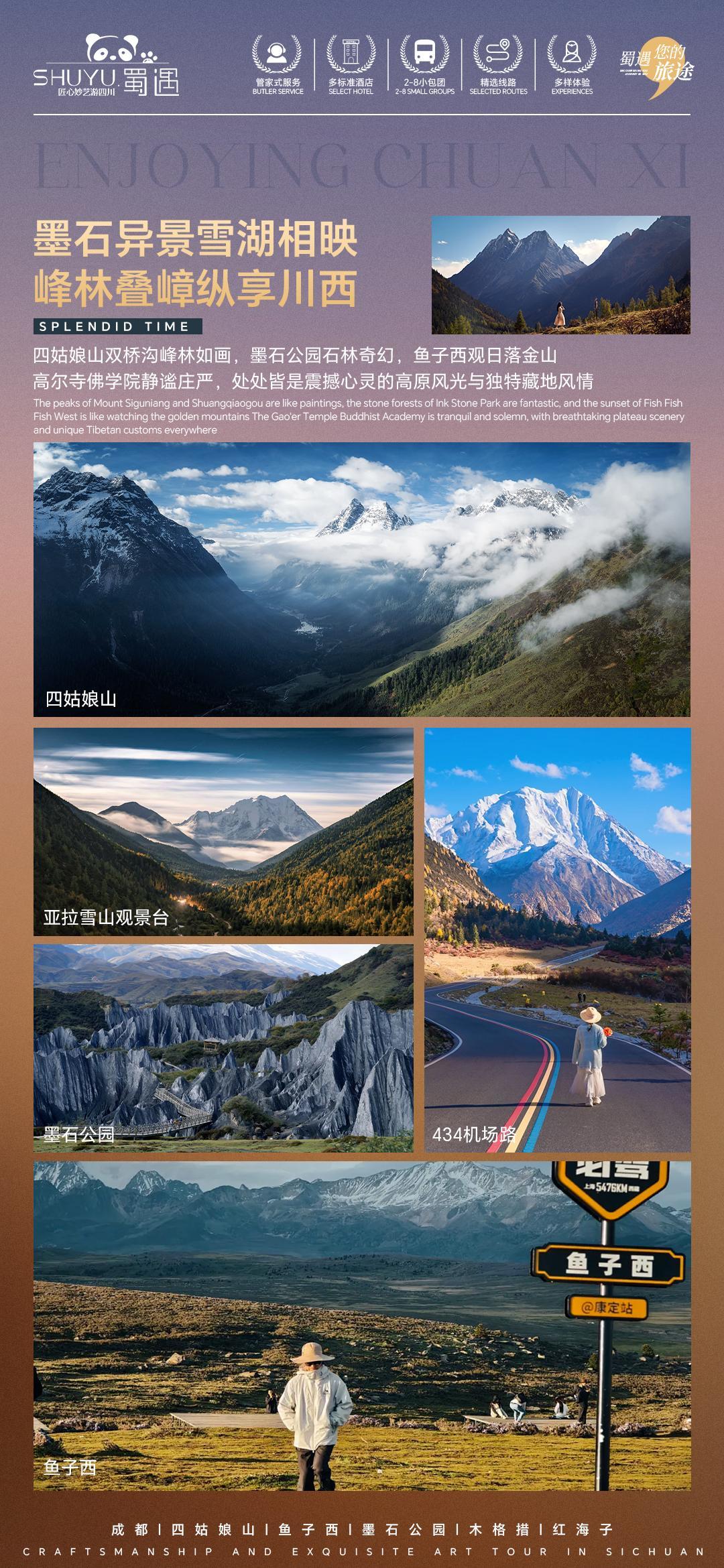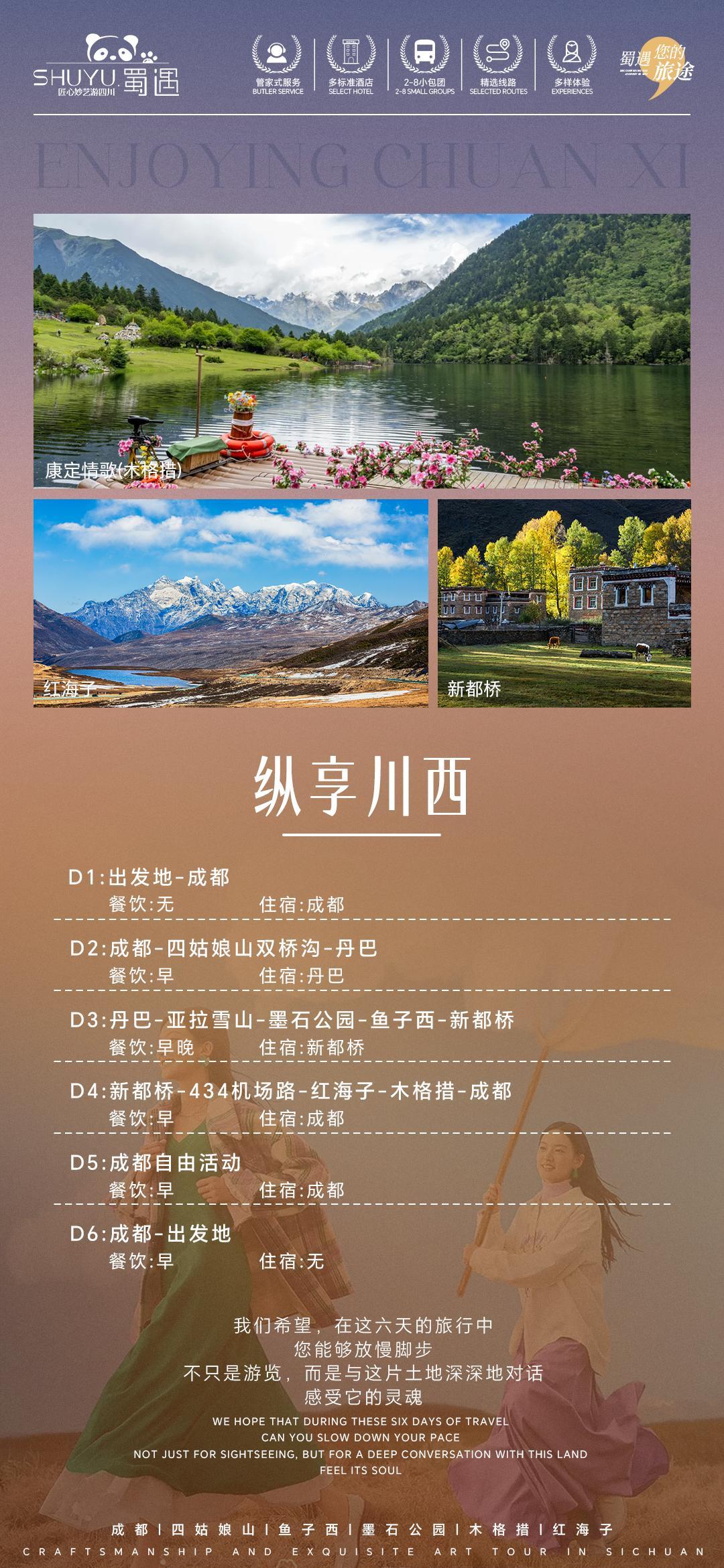 早餐后乘旅游巴士从酒店出发前往四姑娘山,游览【四姑娘山双桥沟】景区(门票观光自理)