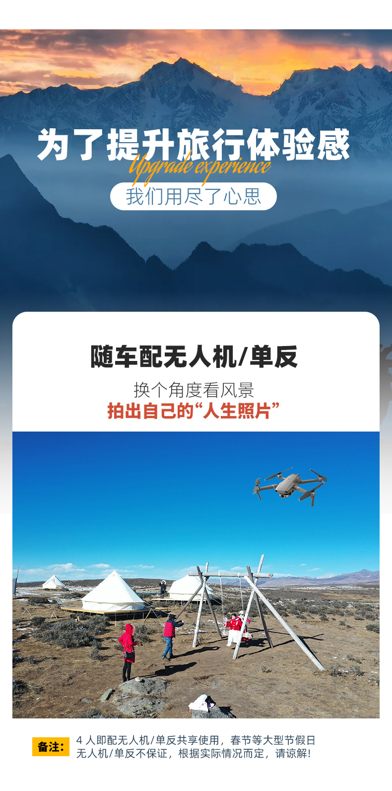 (1)4人即配无人机/单反(春节期间不保证,视情况而定);