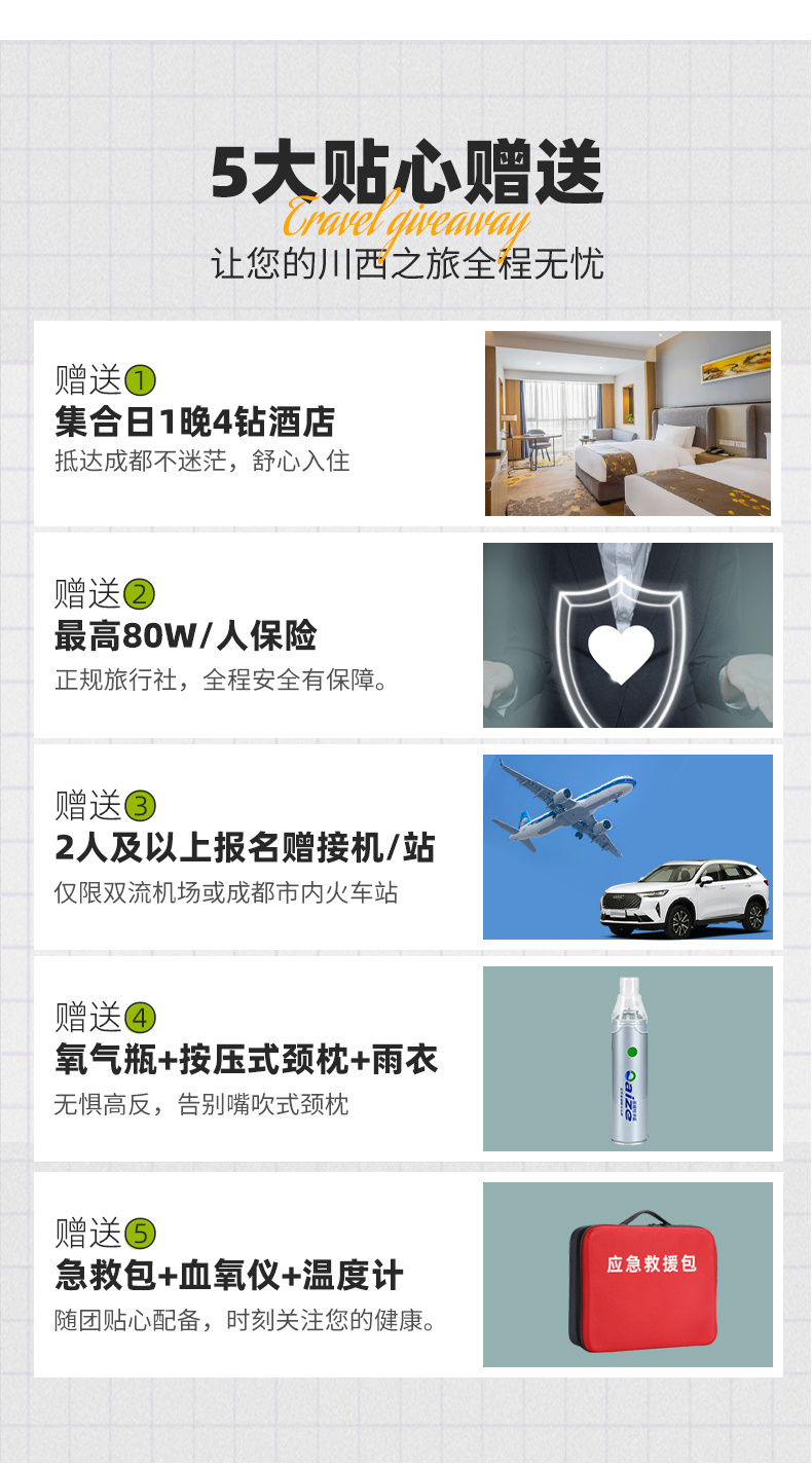6、2人及以上报名赠双流机场接机/成都市内火车站接站(天府机场接机需自理费用);