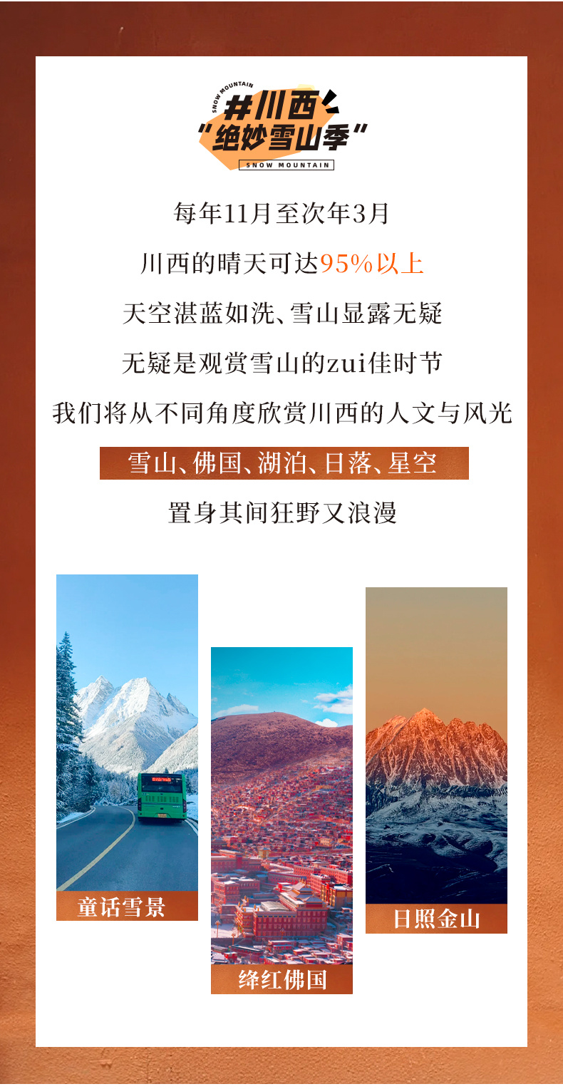 冬季限定,共16期,每周五成都集合,周六出发,次周二成都结束,节假日略有调整。
