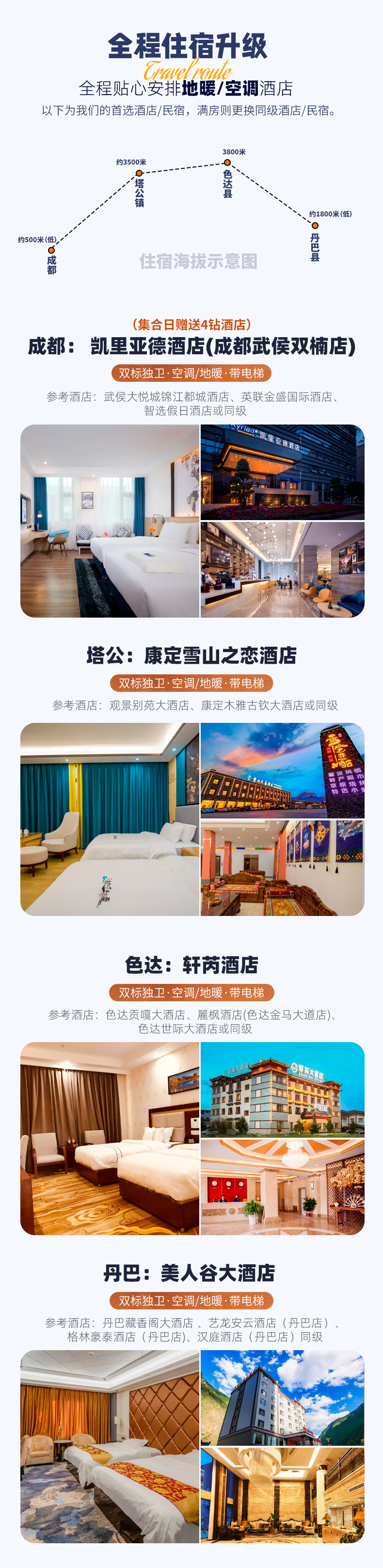 (3)如遇个别酒店,没有电梯和提行李服务,敬请自理;