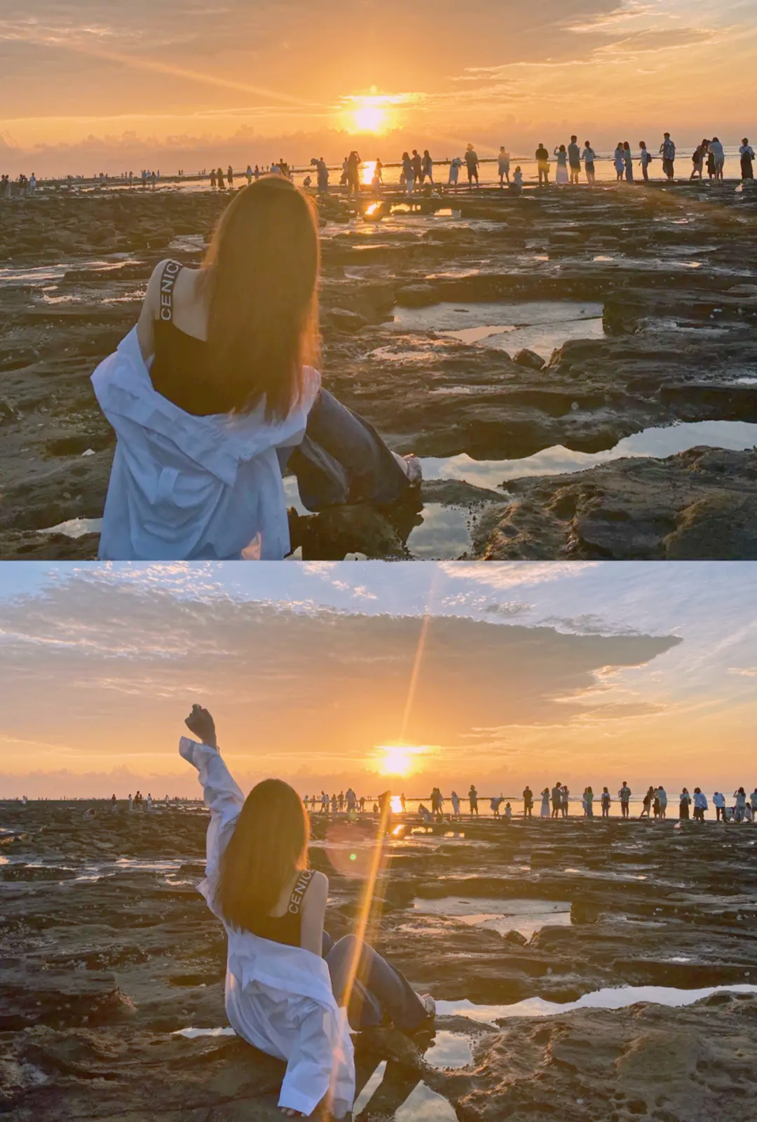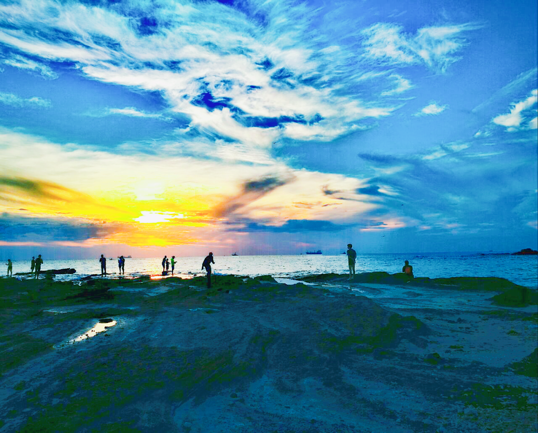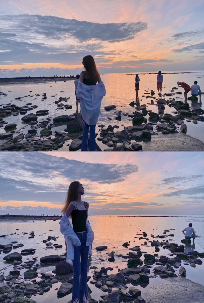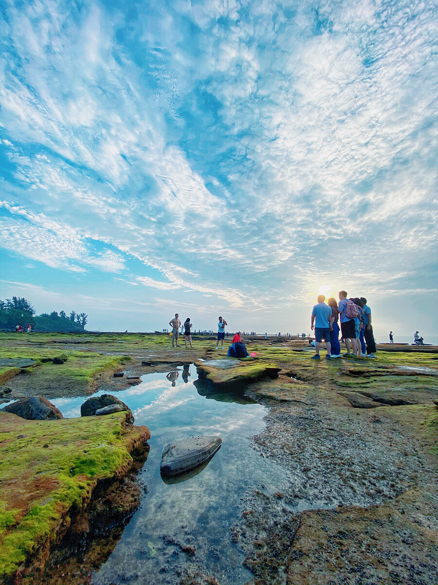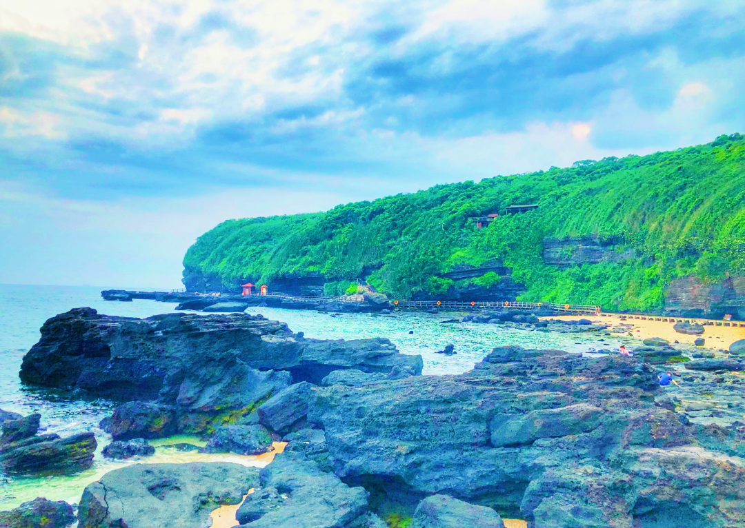 五彩滩,坐落于南湾火山口东南端,这里退潮后裸露出的海蚀平台,