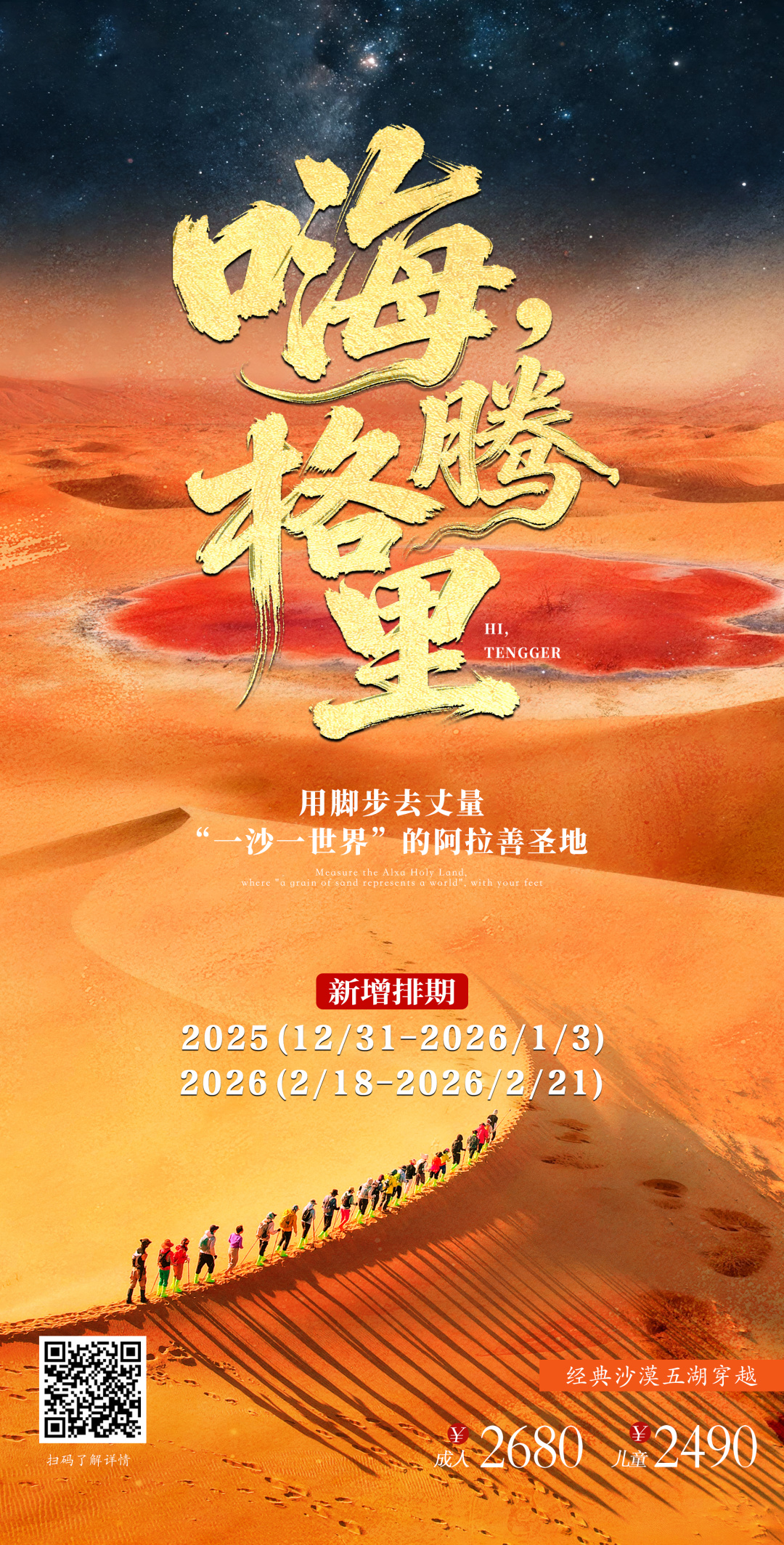 【集合地点】银川市区指定酒店,请报“嗨 腾格里”+姓名拿房,酒店入住时间14:00后,提前抵达可将行李寄存在酒店前台;