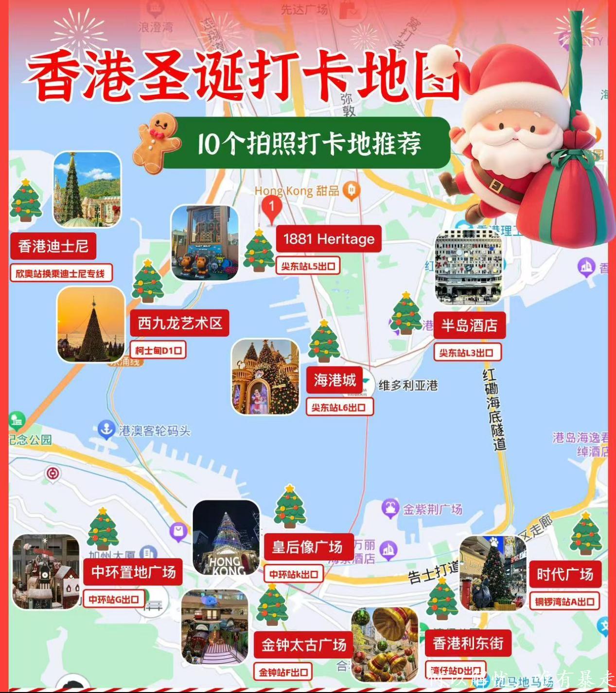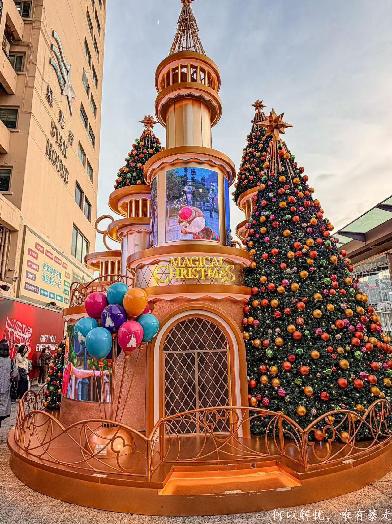 亮点2:香港的圣诞真的把浪漫刻进DNA里了!从维港边的梦幻小镇到百年建筑的复古灯饰,从迪士尼的魔法飘雪到商场的奢华装置,以下打卡地满足你对圣诞的全部幻