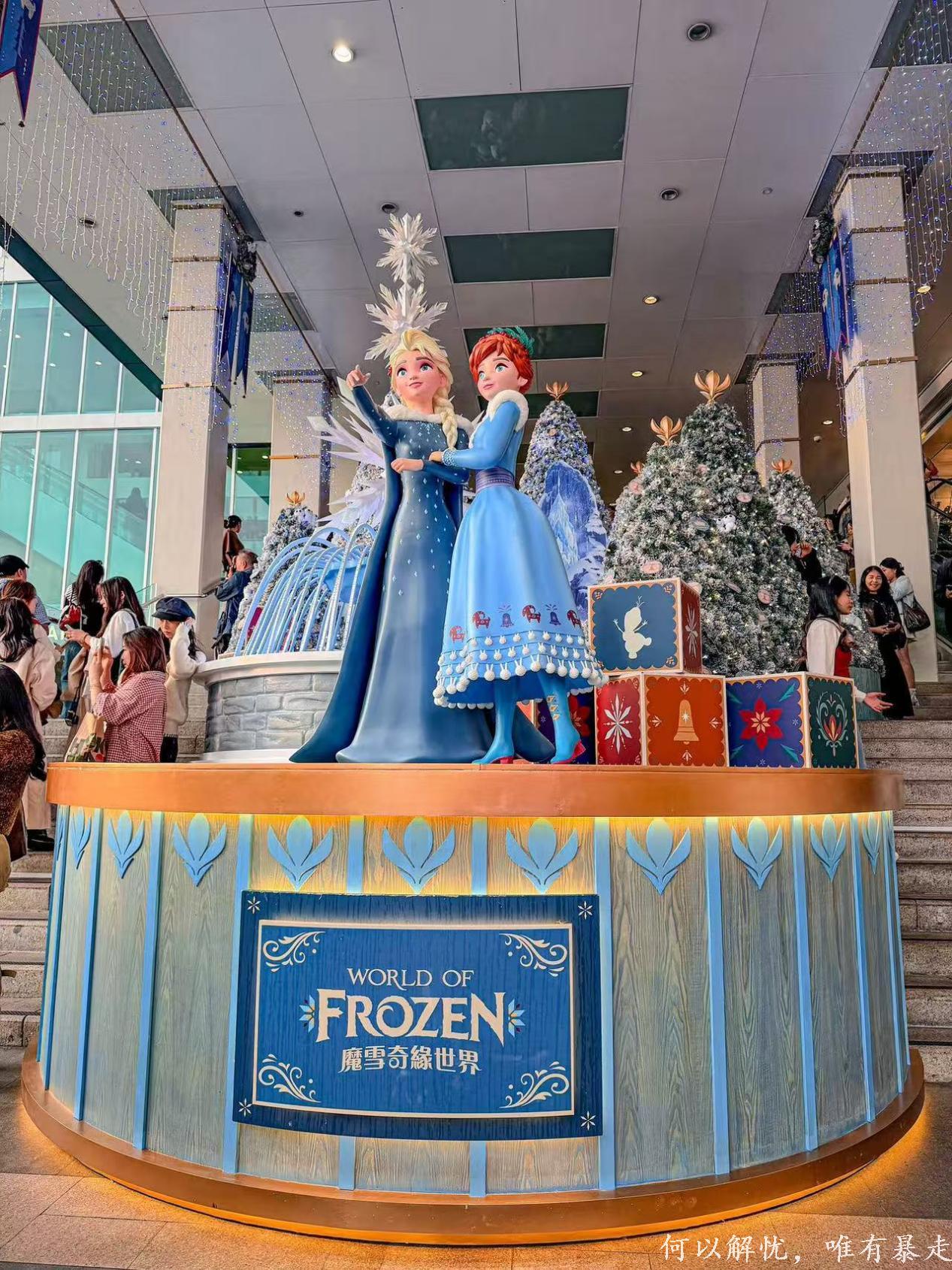 海运大厦露天广场有 9 米高迪士尼主题圣诞树,还有米奇好友花车装置和《冰雪奇缘》等场景