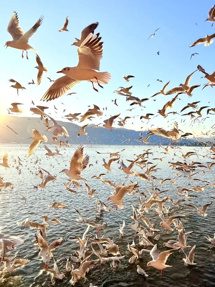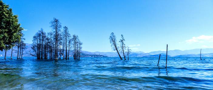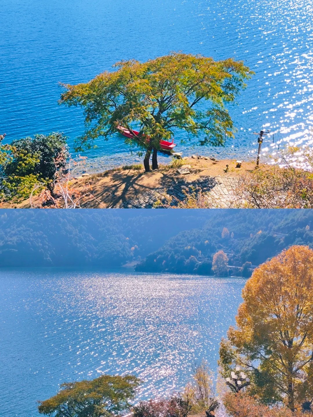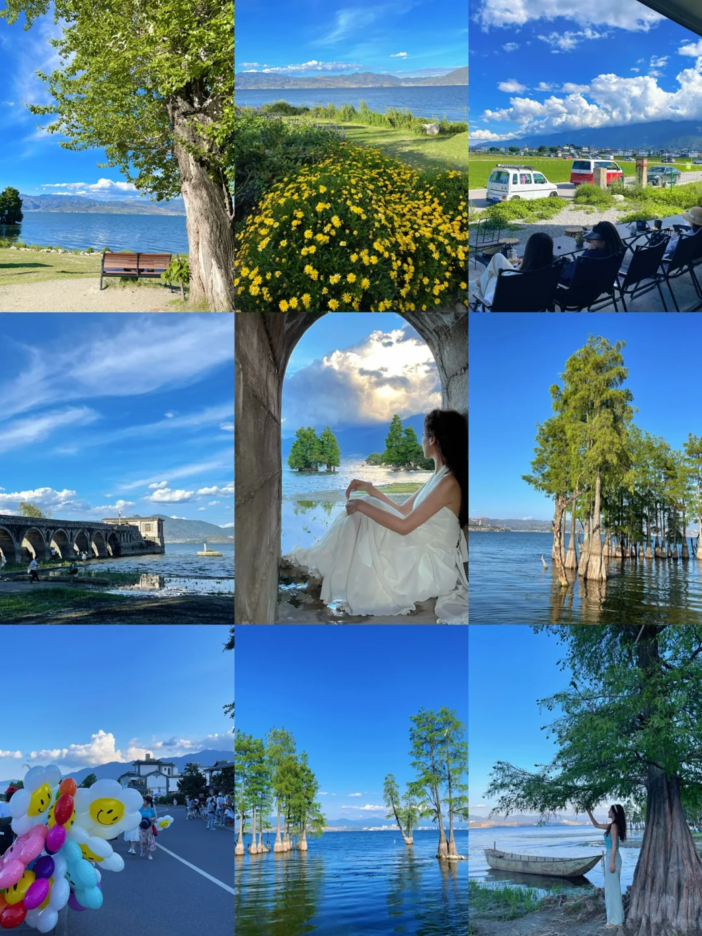 2、欣赏湖景:尽情欣赏泸沽湖的湖光山色。湖水清澈见底,能看到湖底的水草和鱼儿,远处山峦起伏,与蓝天、湖水相映成趣。如果是在水性杨花盛开的季节,还能看到湖面上漂浮着的白色小花,宛如仙境。