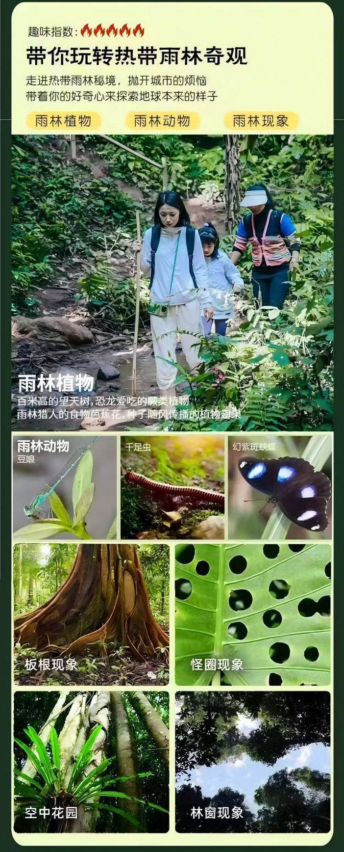 上午雨林徒步,大瀑布,空中滑索,动植物科普,技能讲解;