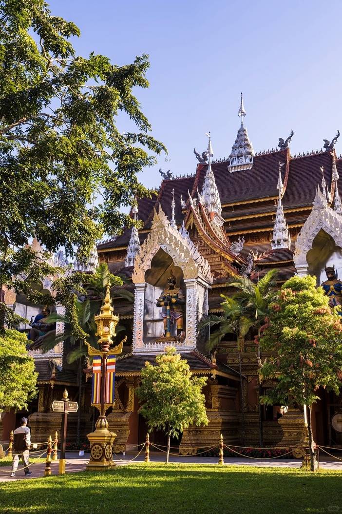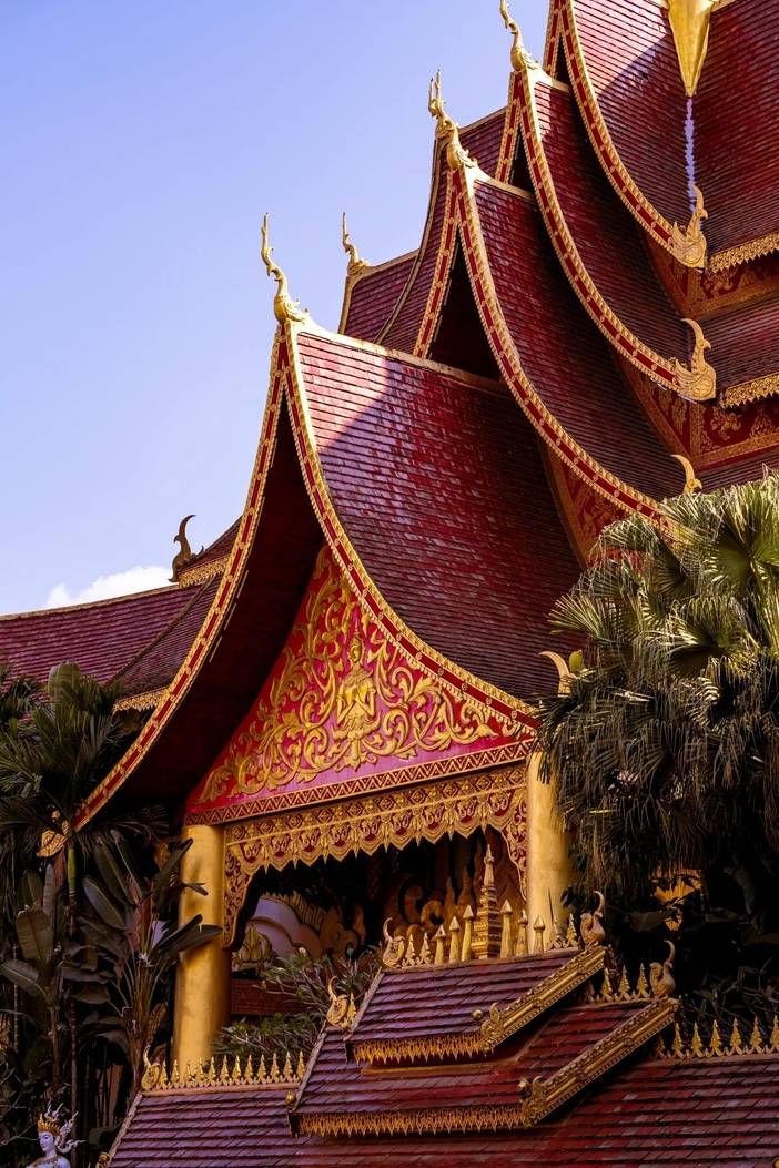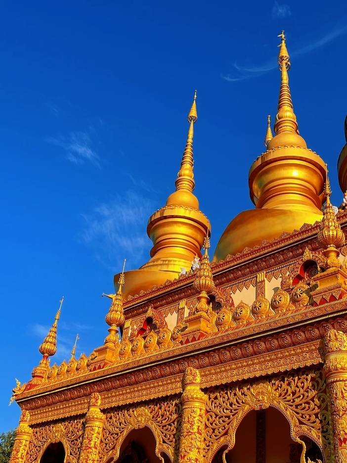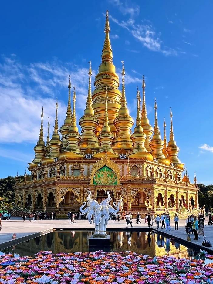 从山门至万佛塔,佛祖释迦牟尼的生平巧妙的融入到景观和建筑中,使得每处细节都有说法、故事,从万佛塔广场俯视景洪市区,旖旎的热带风光尽收眼底。