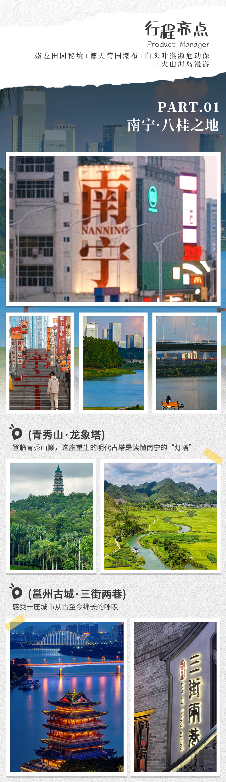 2、广西景点分布较广,部分景区位于山区或乡村,路途较远且弯道较多,建议提前备好晕车药。自驾游客请注意山区路况,谨慎驾驶。
