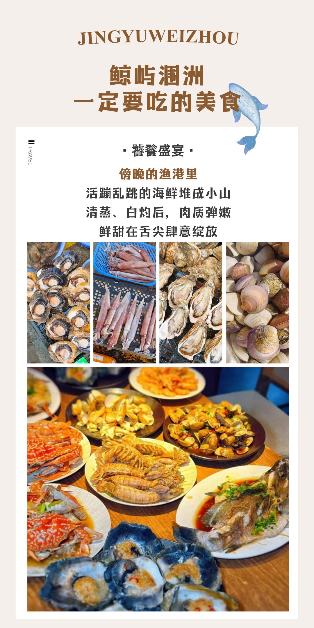 18:30 自行开启涠洲岛夜生活模式,三五结伴自由到南湾街海鲜市场购买海鲜,加工享受海鲜大餐,或者去海边的酒吧,看着海边夜色,听着主唱歌曲,生活何其惬意;