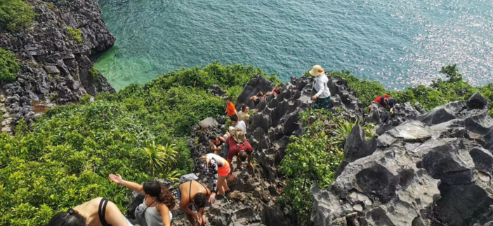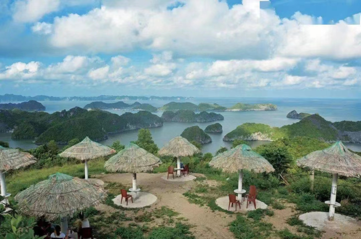 第四站:如果大家喜欢徒步的话,在猴子岛有一条登高徒步线,登顶后在这里看着下龙湾深处千岛之链的壮观日落景色!