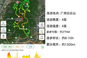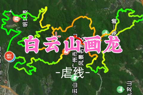 【活动路线】:白云山西门→月溪书院→半山亭→沐霞亭→龙翔亭(午餐所在,有水可洗漱)→濂泉岔口→山顶广场→荡胸亭小卖部(不要走过了,不然图案会连起来)→龙虎岗→明珠湖(绕一圈,龙睛所在)→黄婆洞水库北侧绿道(为图案完美,要转走一点土路再绕回绿道)→月溪书院→白云山西门
