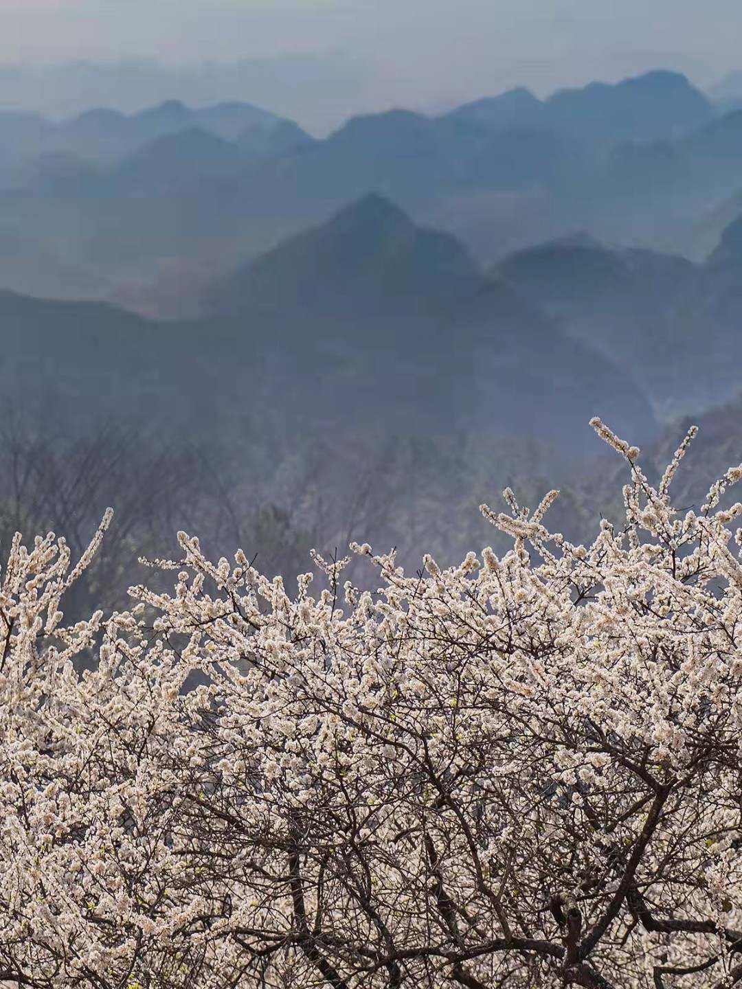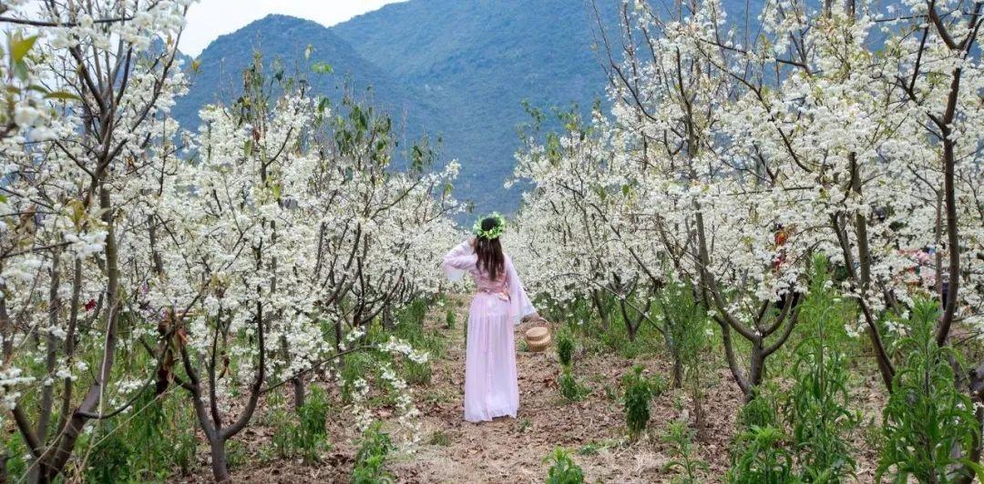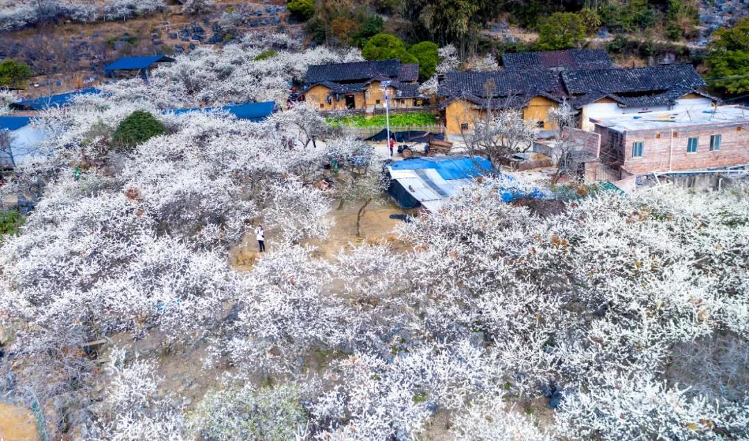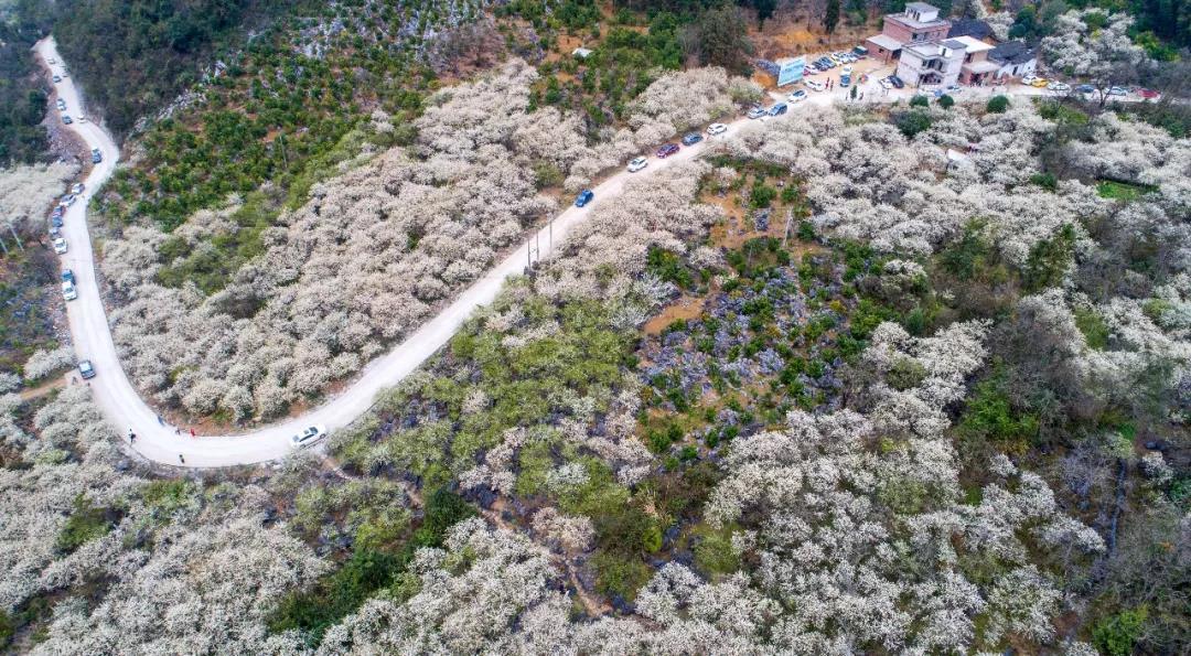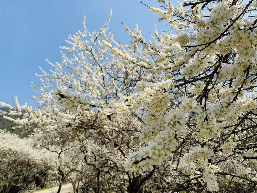 数万株李树枝头绽放出白色的花朵