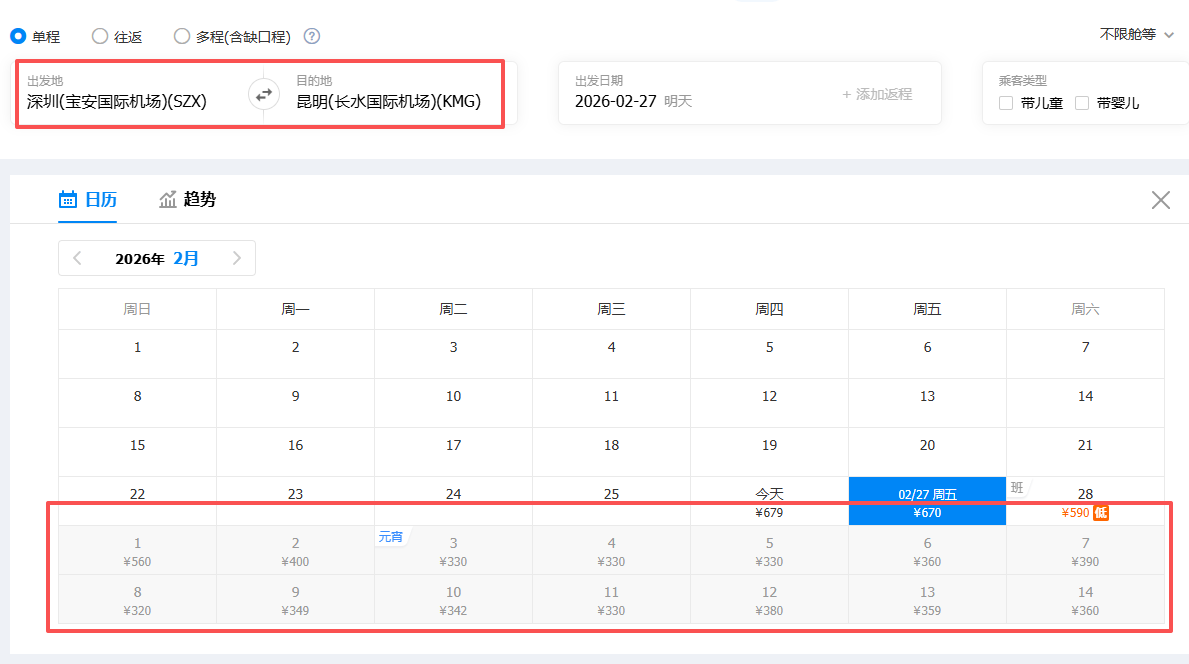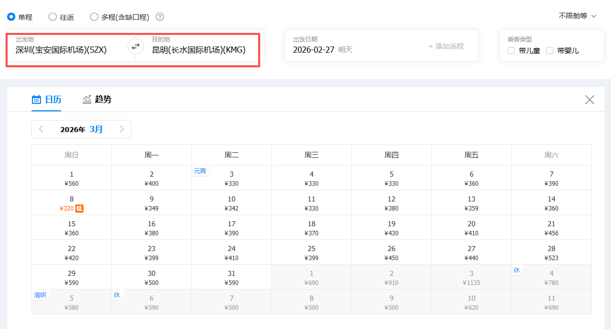 三月出行,深圳直飞昆明,机票价格低至410元起!