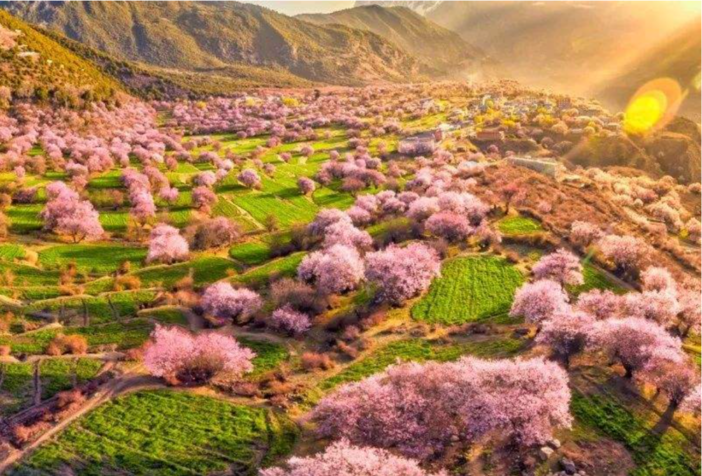 早餐后驱车到达【桃花沟】,每年三四月,远方连绵的洁白雪峰,成片的粉红桃花,碧绿的青稞田,美丽的藏民居和湾湾的河流构成一副仙境般的画卷,可谓名副其实的世外桃源。