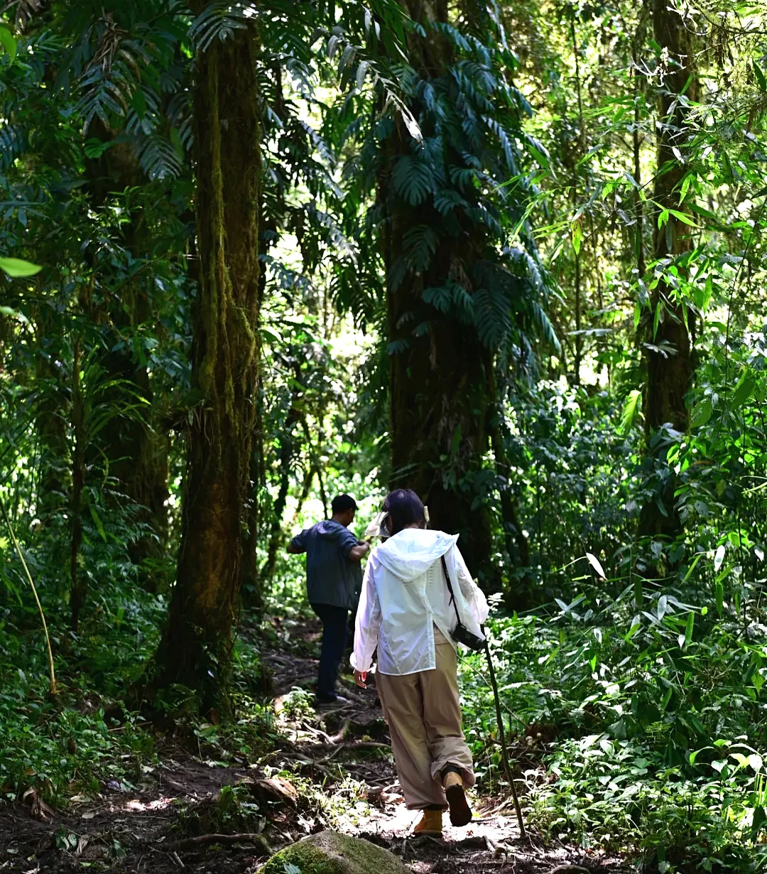 随后我们会安排向导带大家一同进入这片原始森林,重走一次胡歌也亲自去过的经典线路—探寻不丹松树王。路线比较简单容易,往返大概也就2-3公里,耗时1个小时多一点。里面真的绝美!动物和植物爱好者天堂。雨天森林有一些虫蚁,一定要长袖长裤!最后到达原始森林树王“辛达布”,高76.8米不丹松树王,约25层楼。
