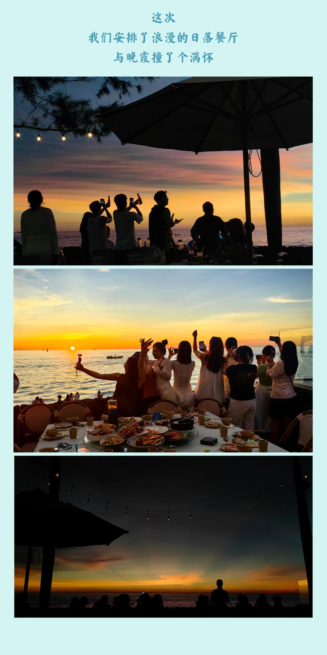15:30 前往南湾海洋运动基地,乘坐游艇出海寻鲸,欣赏壮丽日落;