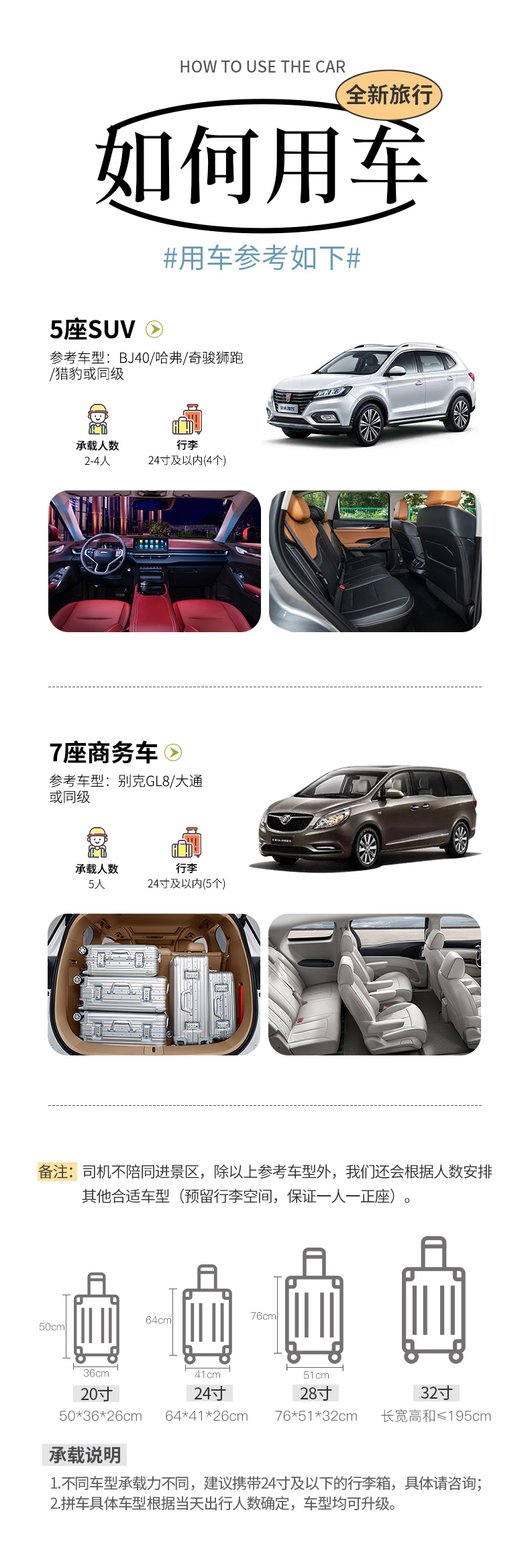 如需携带儿童座椅,因占位面积大。 需要额外支付一人的单车位费用,还望理解