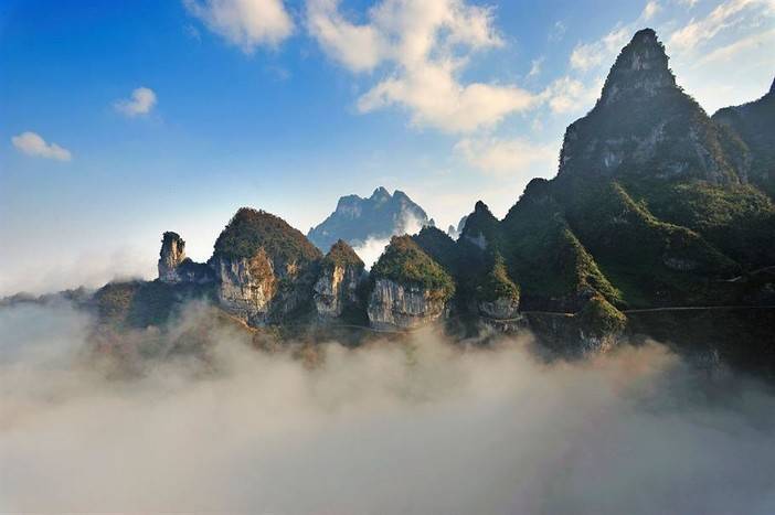 早餐后游览【天门山国家森林公园】(门票已含,已含上下山交通,游览时间约4小时)登张家界之巅,俯瞰张家界全景,观赏奇妙美丽的盆景花园。天门山文化底蕴深厚,有“武陵之魂”之称,更有湘西第一神山的美誉,它兼峰、石、泉、溪、云、林于一体,集雄、奇、秀、险、幽于一身,被誉为空中原始花园。我们乘坐天门山索道,前往游览天门山:观天门洞、 99道弯公路奇观(通天大道)、李娜别墅、鬼谷栈道、鬼谷兵盘、云梦仙顶等著名景点。还有惊险刺激的
