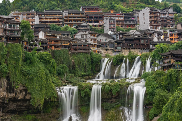 芙蓉镇,本名王村,是一个拥有两千多年历史的古镇,因宏伟瀑布穿梭其中,又称“挂在瀑布上的千年古镇”。位于湘西土家族苗族自治州境内的永顺县,与龙山里耶镇、泸溪浦市镇、花垣茶峒镇并称湘西四大名镇,又有酉阳雄镇、“小南京”之美誉。后因姜文和刘晓庆主演的电影《芙蓉镇》在此拍摄,更名为“芙蓉镇”。现为国家AAAA级景区。