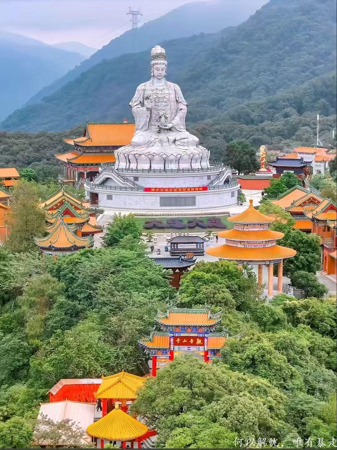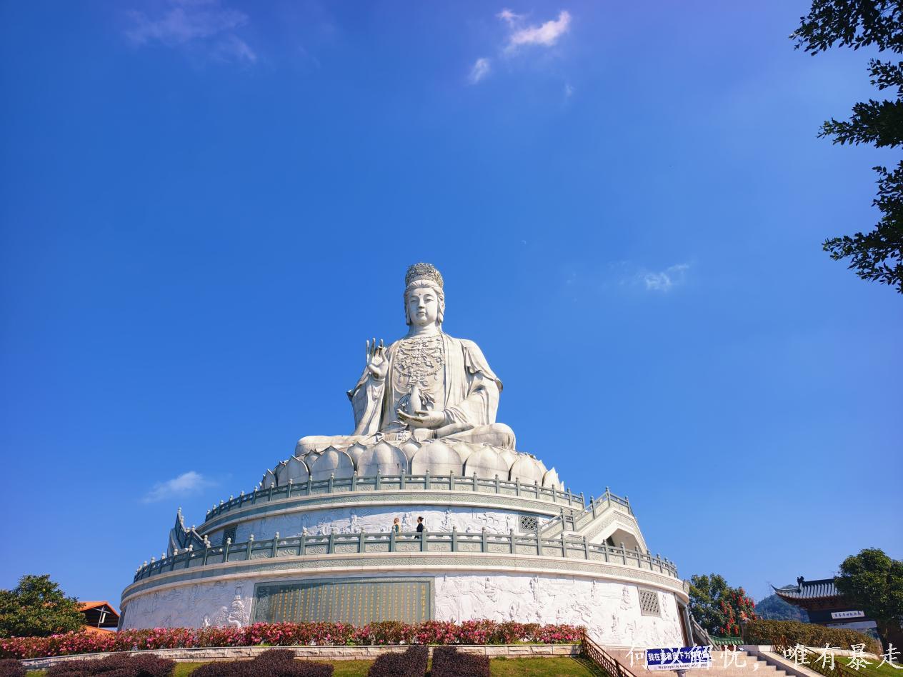 观音山全长程约10公里,爬升约500米。水泥路上下。最高点是33米高世界最大的花岗岩观音圣像那里。