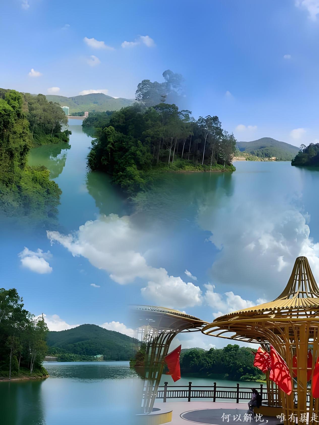 自然地貌独特:以簕竹排水库为核心,以峡谷崖壁、飞瀑深潭、石臼石潭等地质遗迹等水文地质景观和次生沟谷季风常绿阔叶林为特色,被誉为“东莞万绿湖”“岭南小九寨”。生态资源丰富:省级生态森林公园,森林覆盖率96.72%,园内记录包含金毛狗、桫椤等国家二级保护植物野生维管束植植物526种;和包括黑鸢、蟒蛇等在内的国家重点保护动物21种。活动多样:可环湖徒步(9.23公里步道)、水上观光(电动船/脚踏船租赁)、科普研学。