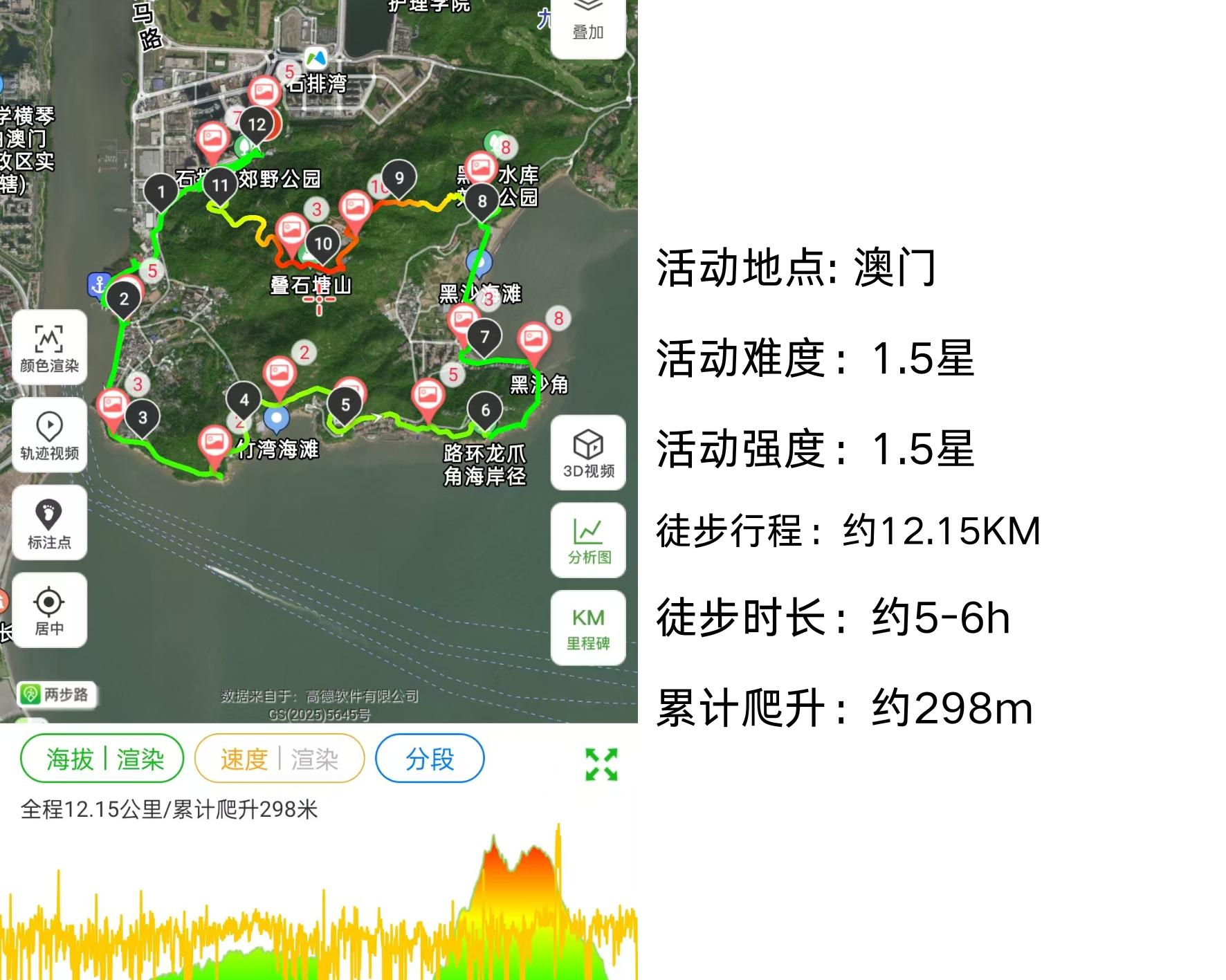 难度指数:★☆ 入门路线,环线,全程约12公里,最高海拔161米,累计爬升约298米