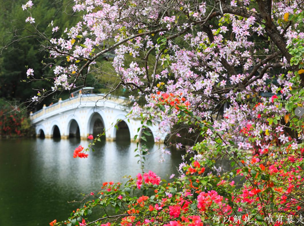 亮点2:碧水绕奇石,绿树掩古亭,白云撩青山。
