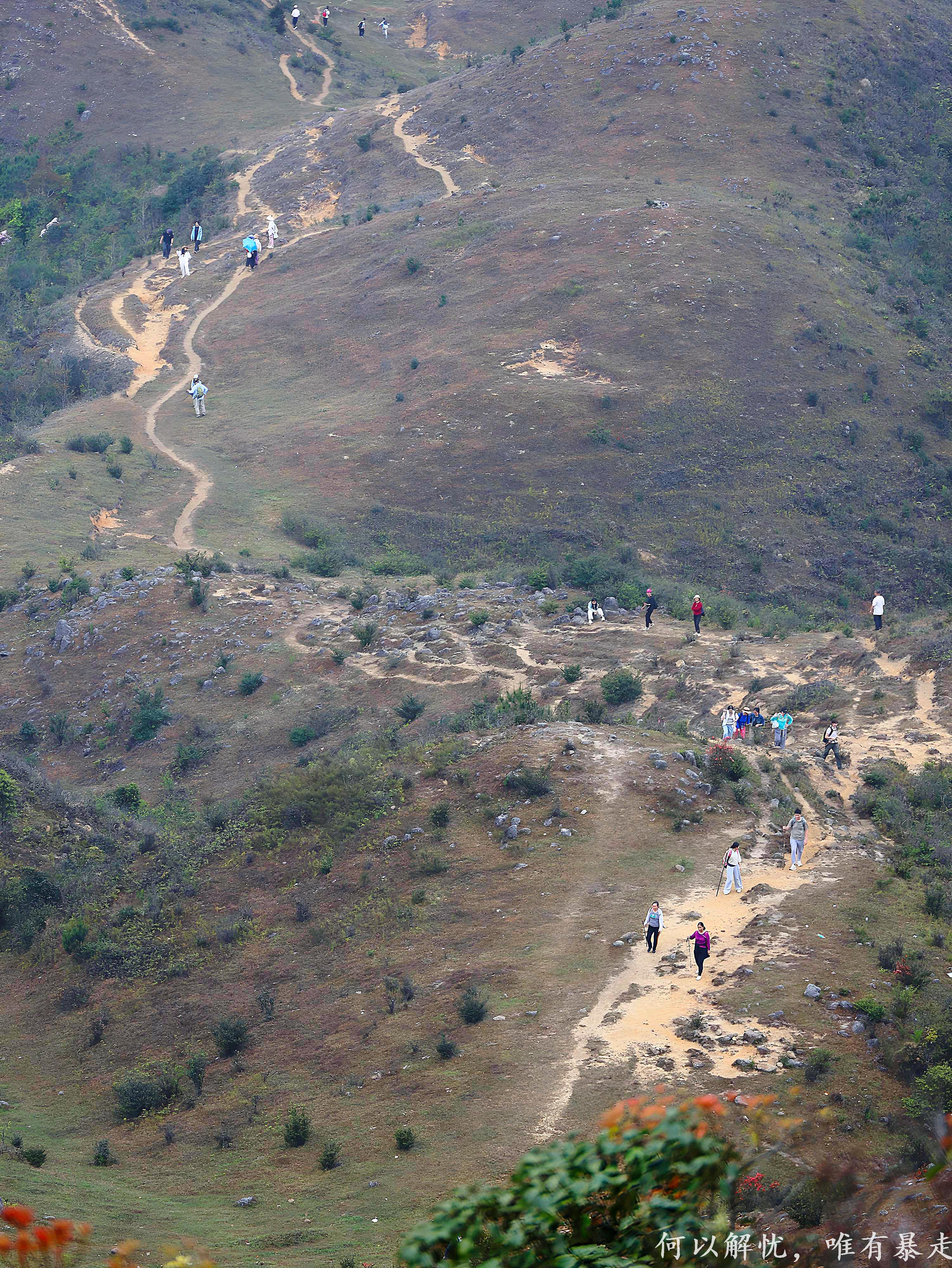 11:30 到达起点,下车热身后出发,开始爬山(沿途需攀登斜坡,穿越草丛,务必穿长袖衣裤、遮阳帽、手套、登山杖、护膝)