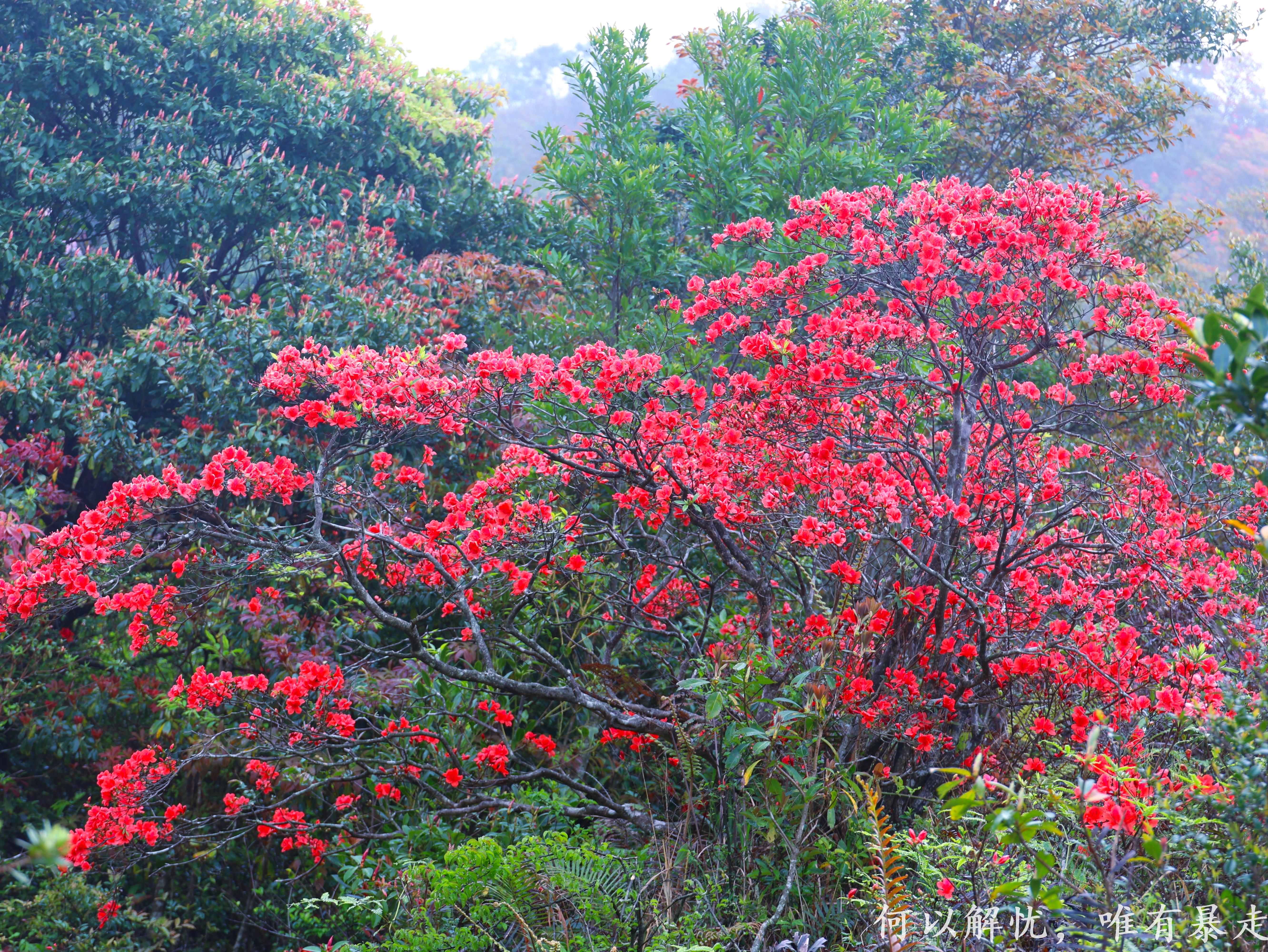 亮点2:赏千亩高山杜鹃花海@广东省内规模最大,最美、最罕有的原始野生乔木高山杜鹃,须生长在海拔900米以上方会盛开,最佳观赏期,漫山遍野映山红;