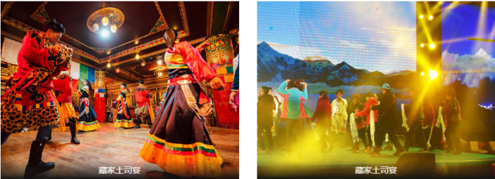 晚餐可自费参加【藏民家访土司宴】是藏特色的歌舞表演,以藏王为核心主题,邀您共享“王的宴席”。 醉美香格里拉民族歌舞晚会,融入了本地藏族特色舞蹈《锅庄》《弦子》《热巴》等民族特色的一场歌舞表演,让游客欣赏藏族正宗传统民族民俗文化;藏式风情,边吃边看。