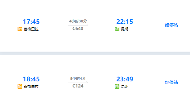 高铁:深圳/广州往返昆明二等票,香格里拉回昆明动车二等票;