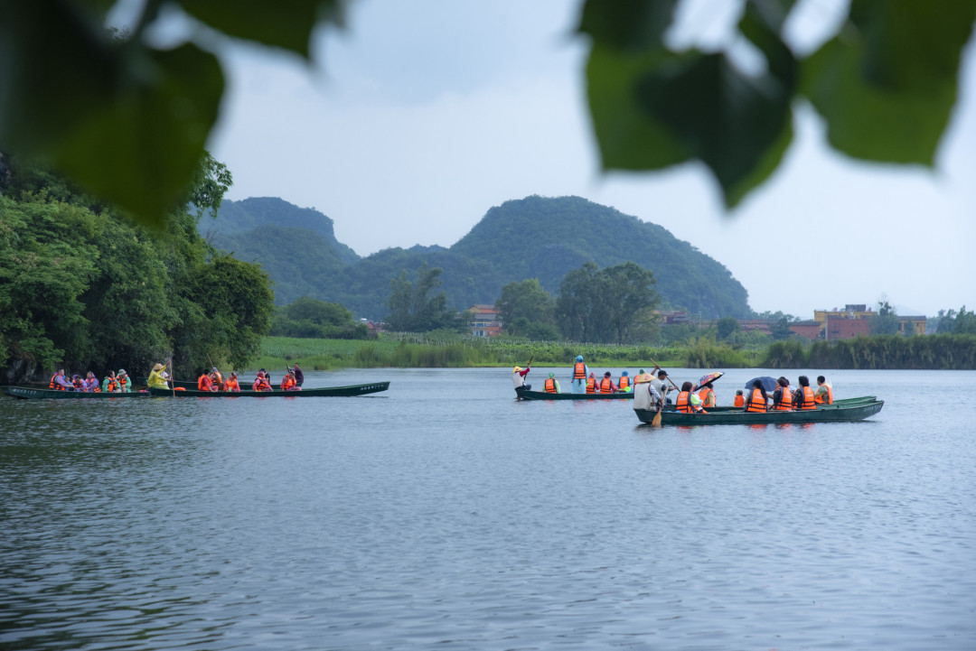 后前往游览菜花箐/青丘——探寻电视剧《三生三世十里桃花》影视拍摄地,站在山上俯瞰,远处孤峰林立,薄雾缭绕,山下湖光潋滟,炊烟袅袅,一派亦真亦幻的山水田园风光。晨起理荒秽,带月荷锄归,这里不是世外桃源,却有着最诗意的生活。