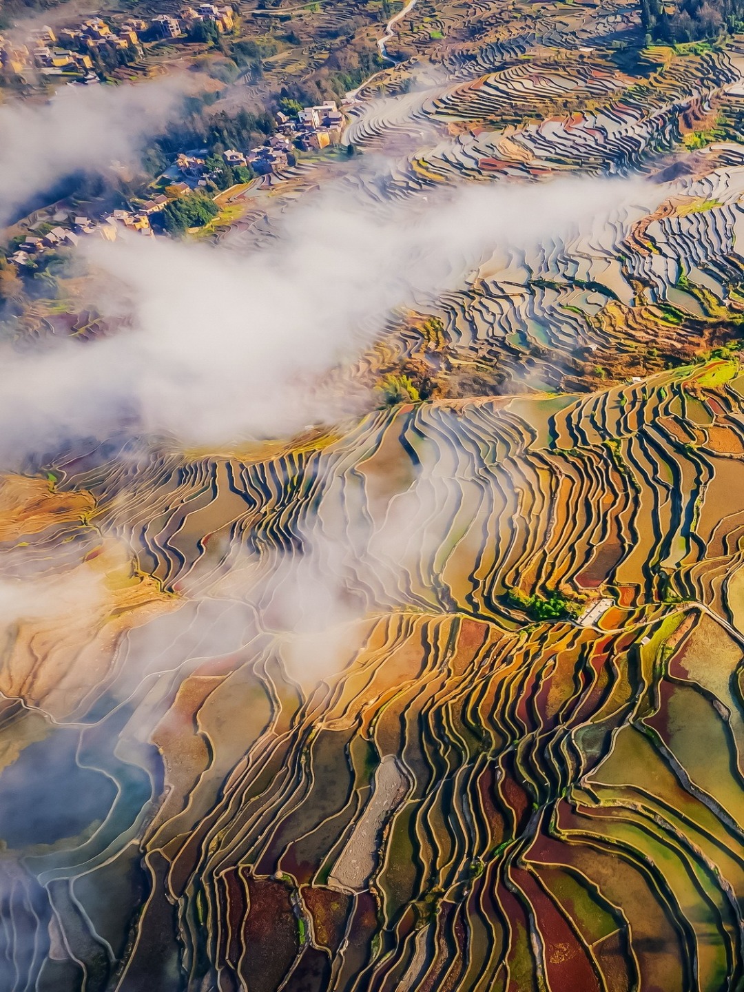 【元阳梯田】元阳梯田位于云南省红河哈尼族彝族自治州元阳县哀牢山南部,是世界文化遗产红河哈尼梯田的核心区。