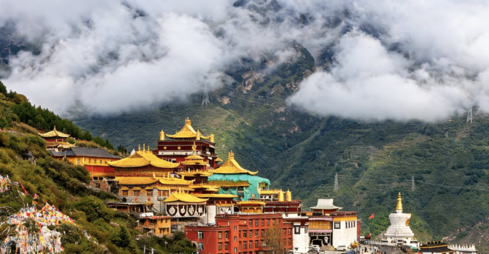 早餐后离开色达,前往【观音桥镇】。抵达后参观有“第二布达拉”之称的【观音寺】(车程约220公里,用时约5小时,游玩约1小时)。这座悬于云端的寺庙历史悠久,香火旺盛,加上毗盧遮那曾加持寺內供奉的四臂观音,寺庙所在地也是有名的纳勒神山。