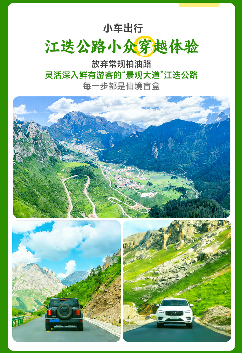 早餐后,我们将驶入被誉为“甘南ZUI美越野公路”的【江迭公路】,一路上,高山、草甸、峡谷、溪流次第展开,车窗外的风景如流动的画卷。随后抵达最美观景台【达日观景台】(车程约160km,用时约4小时,游玩约30min)。