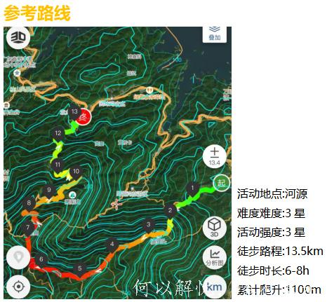 入门线定义:需要徒步经验,能爬升500米高+走13公里长,适宜年龄10-60岁