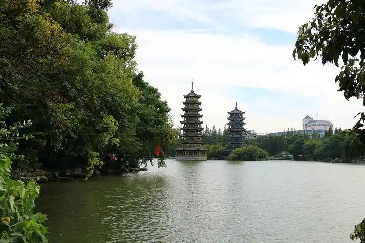 慢步游古典式园林【榕、杉湖新景】桂林的文化新地标【日月双塔外观】俯瞰桂林山水和桂林市容貌,【正阳步行街、中心广场】感受桂林都市气息。