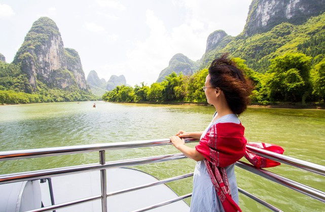 乘三星船/主题豪华船游览国家AAAAA级景区【大漓江风光】沿着这条青绸绿带,盘绕在万点峰峦之间,其中奇峰夹岸、碧水萦回、削壁垂河、青山浮水、风光旖旎、犹如一幅百里的画卷,