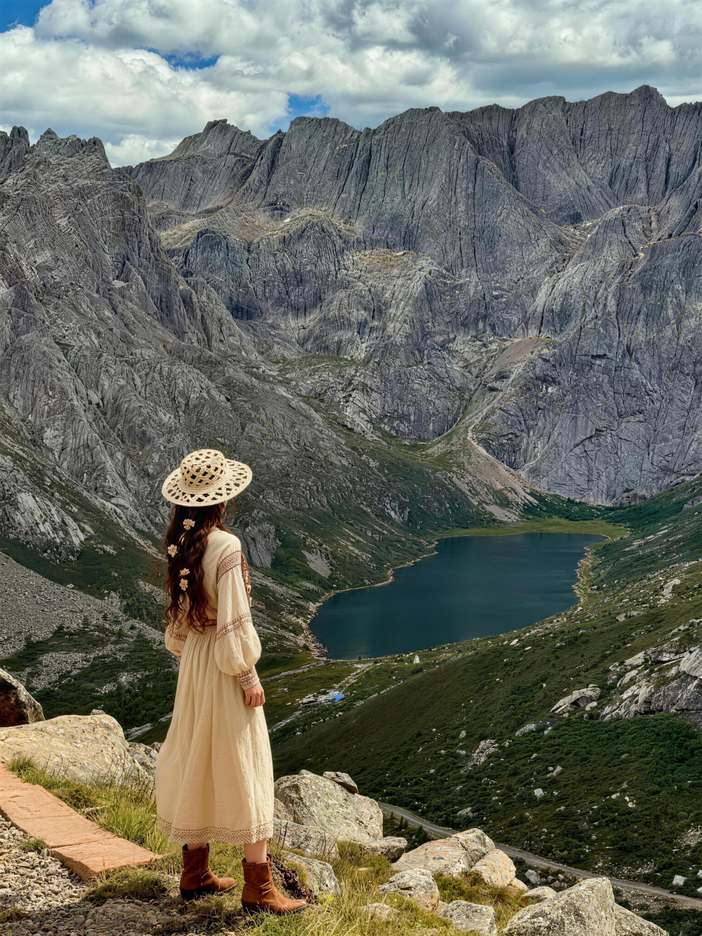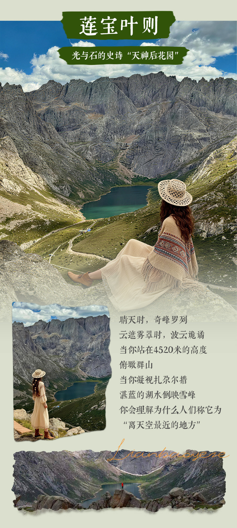 上午:从阿坝县出发,途经【莲宝叶则】,藏语为“尊严的玉石之峰”,嶙峋的奇峰异石如巨人阵列,扎尕尔措湖静卧其中,景色苍凉雄浑,宛如《指环王》中的中土世界。