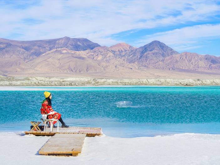 17:30抵达【大柴旦翡翠湖】,这里之前是少有人知的天空秘境,网红必打卡之地。晶莹剔透的湖水由于富含各种元素,在阳光的照射下呈现出多种绚丽的颜色。盐湖映衬着远处若隐若现的雪山,相得益彰,我们时间不赶,有充足的时间在这里游玩!