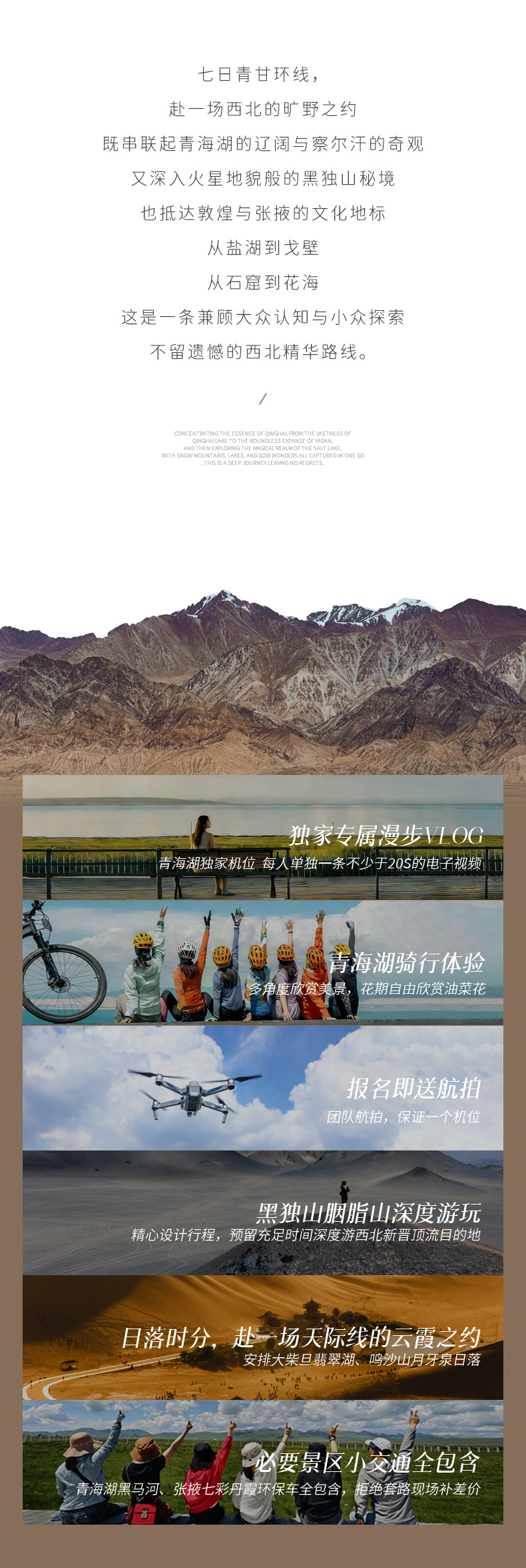 6、青海湖漫步vlog电子视频(5月1日及以后团期赠送,如团期无法安排则改为赠送一个机位的团队航拍视频或同价值体验)